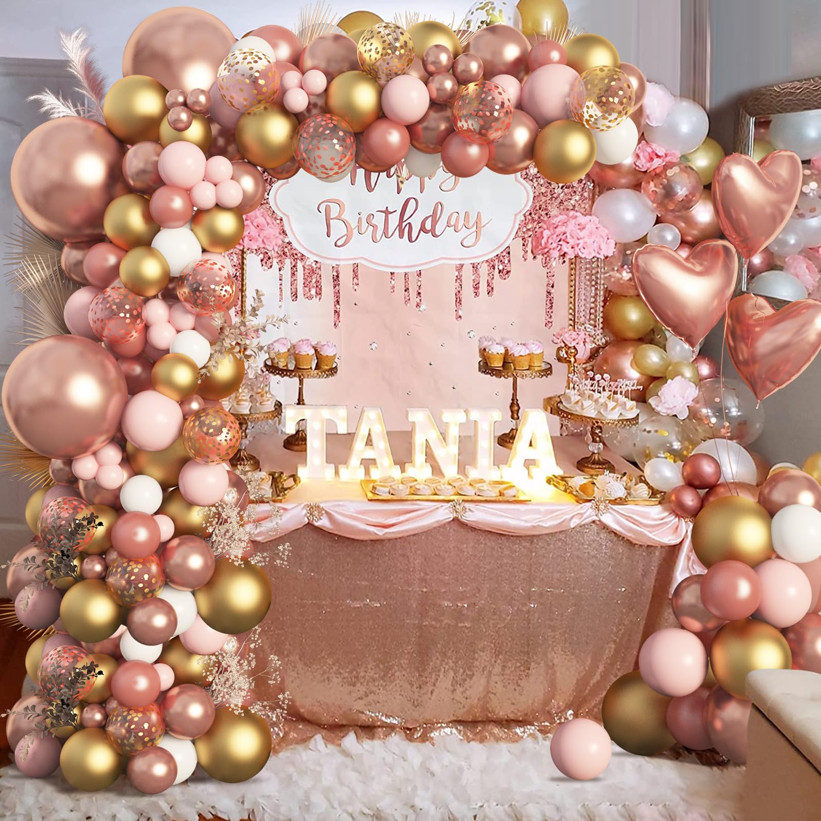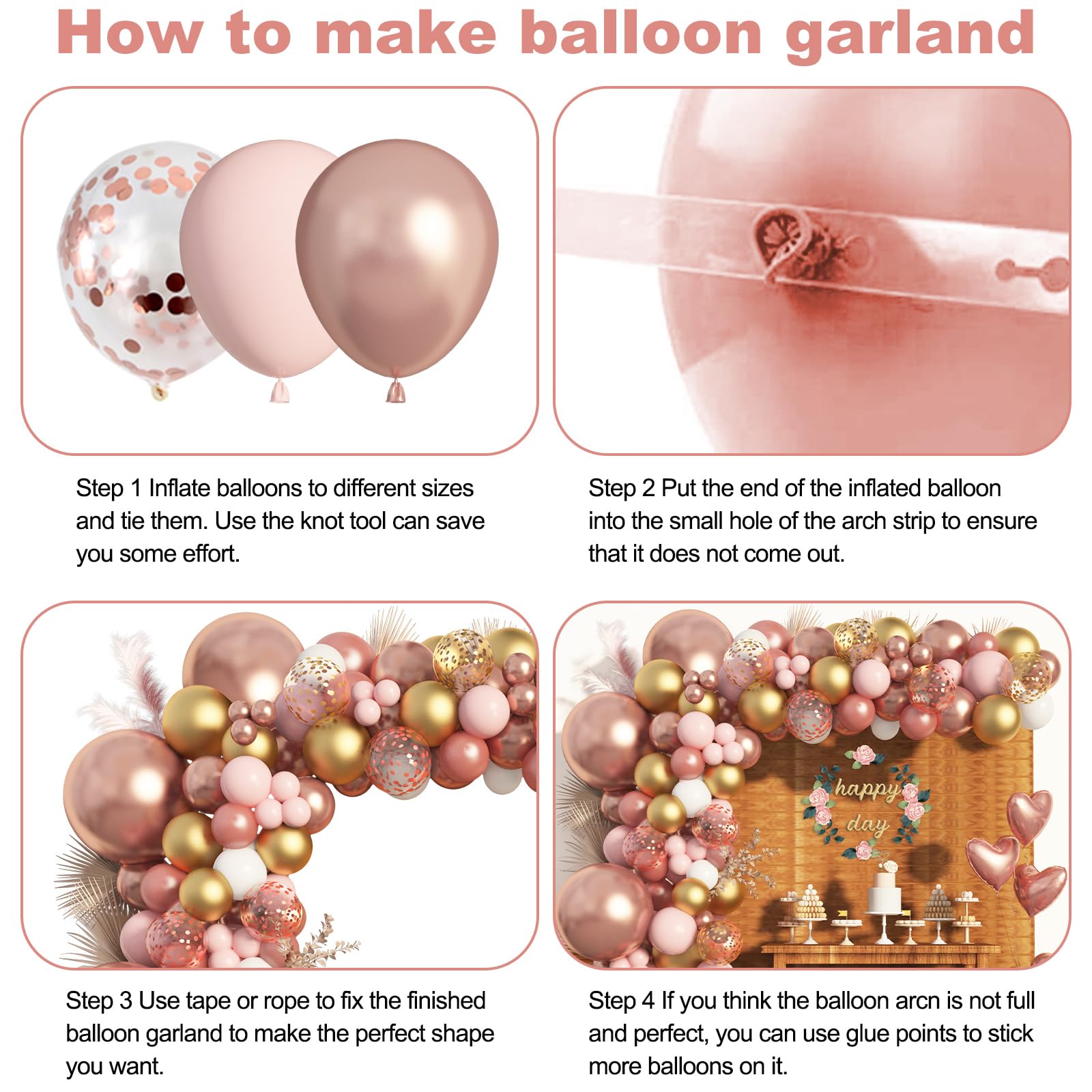 Easy to Use: Our decoracion de cumpleanio s para mujer also comes with 4 balloon tools including balloon arch strip, glue points, tying tool and ribbon; These tools can help you easily create a gorgeous rose gold and pink balloon arch