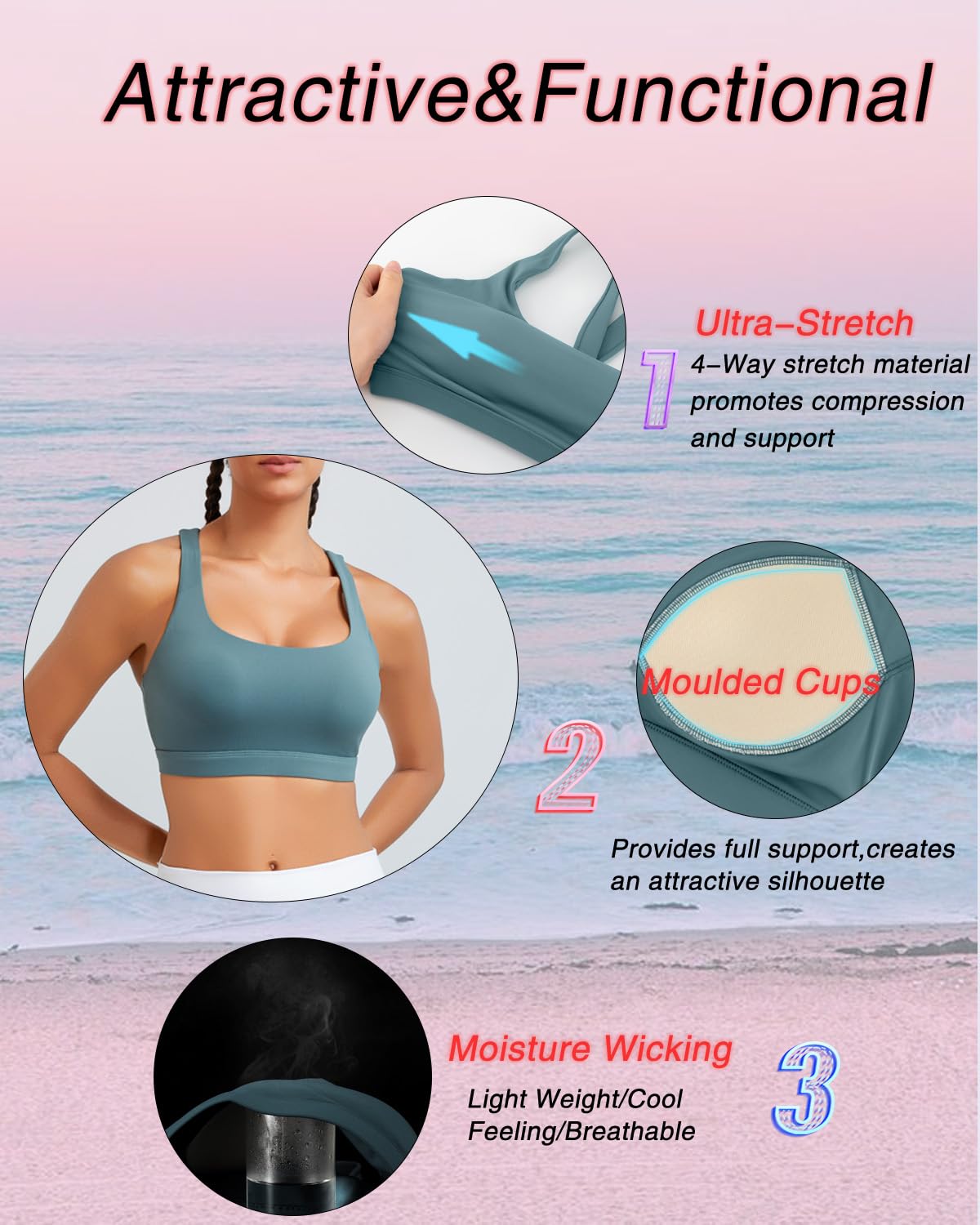 ✅ 【SWEAT OUT IN STYLE! 】: Made from a flexible four-way stretch fabric that supports your body as you move. Enjoy the freedom of movement as the open back styles aim to keep you comfy and cool while you bring on the heat! Running sports bras for women with wide waist band for that support we all need!
