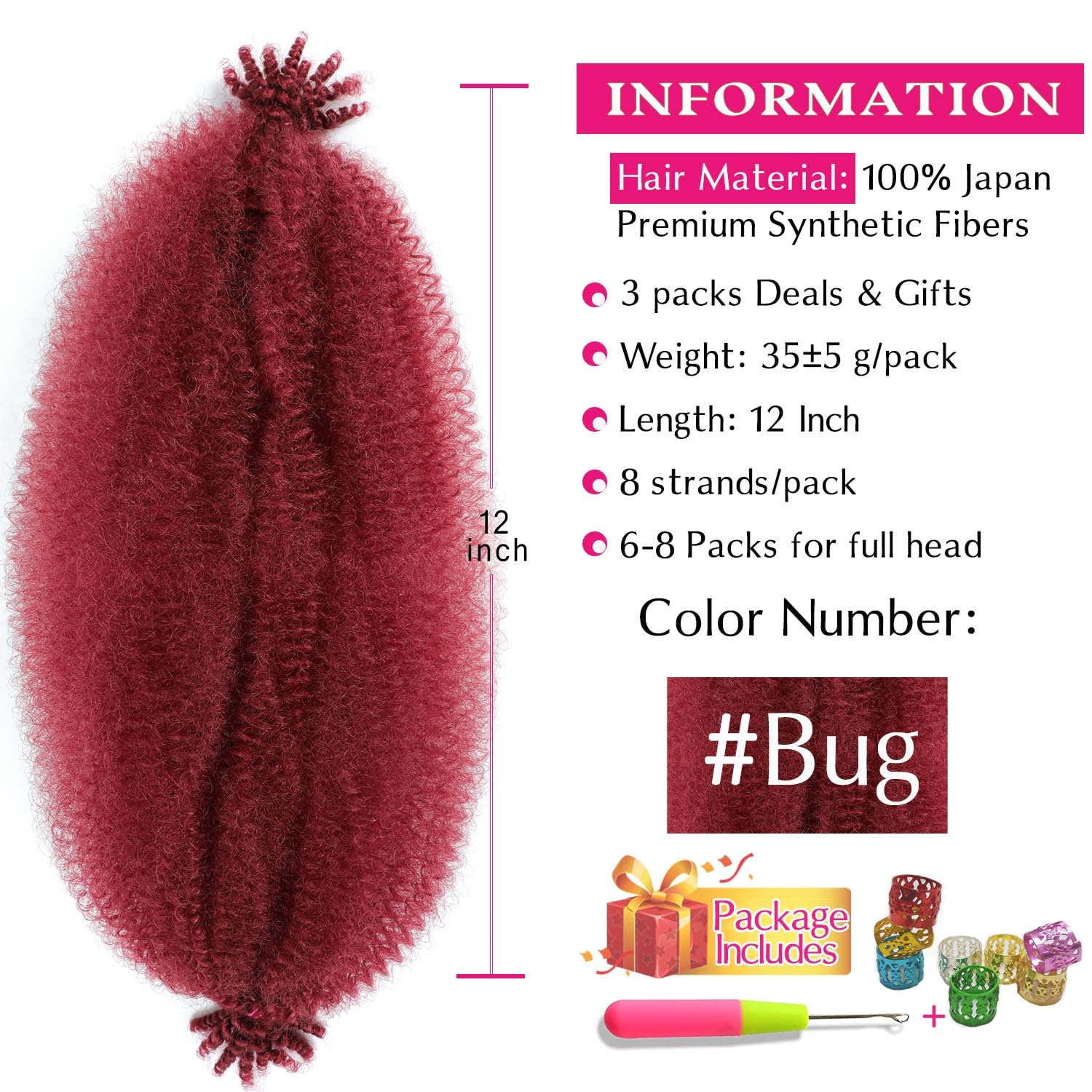 Specifications: Afro spring Twist Hair 12 Inch (35±5g/Packs, 8 Strands/Pack,3 Packs/Lot), Usually 6-8 Packs Can Full A Head, Available In 12+ Tones, There’S Something For Everyone. Step Out Of Your Comfort Zone, Get Creative, And Style With Ease