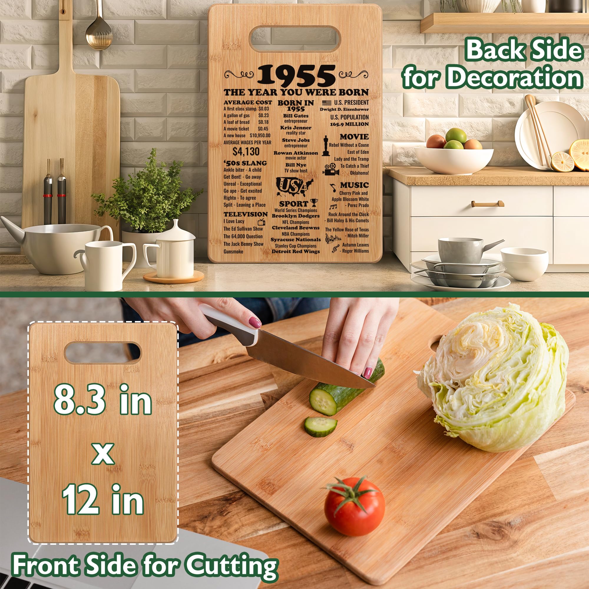 【Best 70th Birthday Gifts】If you are looking for a gift for friends and families who are going to celebrate a 70th birthday, this back in 1955 cutting board with fun facts and significant highlights of what happened in the year makes a great 70th birthday gift for men or women.
