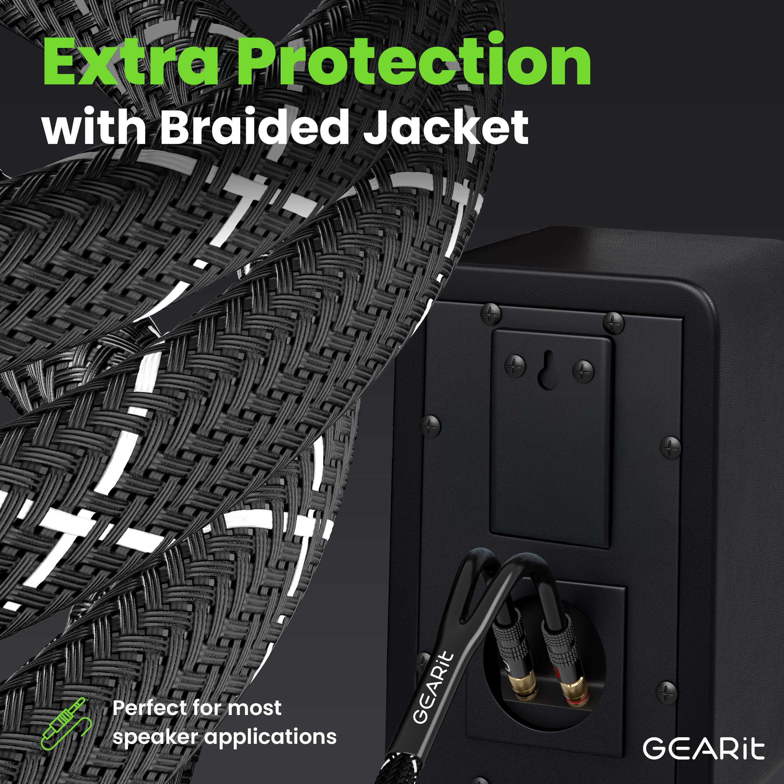 High-end look with braided jacket wrapped around speaker wire, giving them extra protection to your speakers' finish allowing Pro-grade sound quality yet retaining the flexibility of ordinary speaker wire
