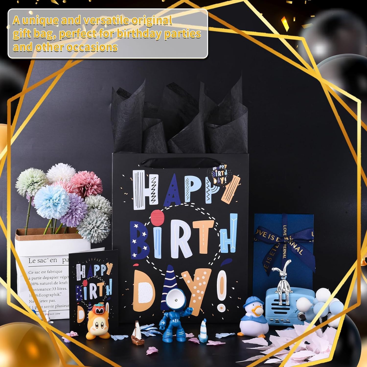 🎯【Gift Bag for Men&Women】The gift bag is made of high-quality paper, ensuring durability and sturdiness for your party gift-giving needs. Compared to ordinary gift bags, its exquisite patterns and styles stand out. These bags can be reused for storing daily necessities or as shopping bags, making them an excellent choice for gift packaging!