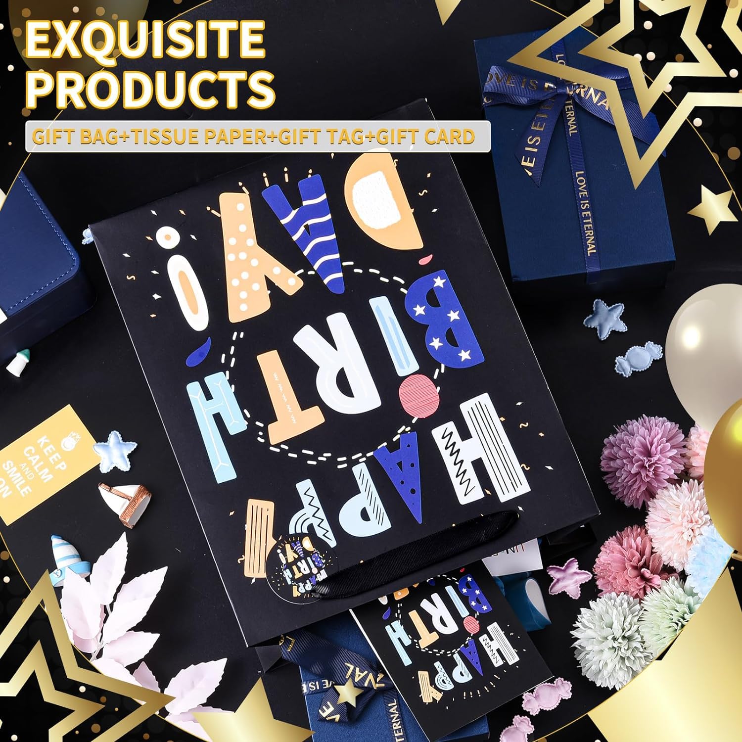 💡【Birthday Bags】This adult gift box is beautifully designed and elegant, with the words on the bag processed with gold stamping. It is perfect to send with gifts in various occasions, and the stunning gift bag will greatly enhance the recipient's expectations for your gift. The gift bag we prepared will help you express your feelings to someone special in your life. The gift bag can be used without excessive decoration.
