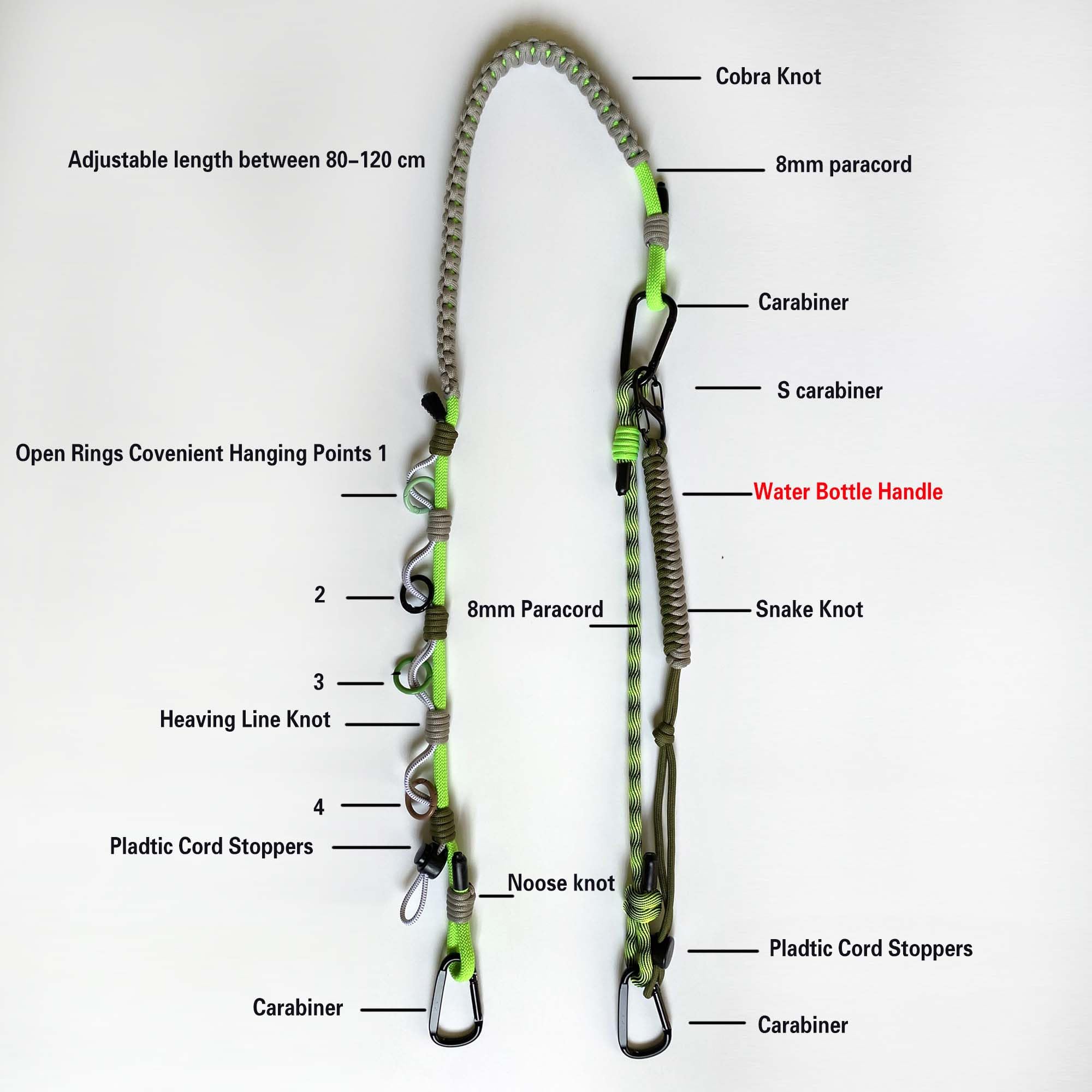 Easy Attachment: The strategic placement of loops,hooks and carabiners allows for quick attachment, ensuring you can switch it between accessories effortlessly.