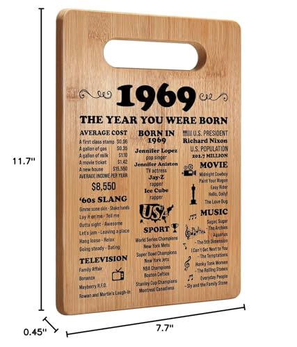 【Best 55th Birthday Gifts】If you are looking for a gift for friends and families who are going to celebrate a 55th birthday, this back in 1970 cutting board with fun facts and significant highlights of what happened in the year makes a great 55th birthday gift for men or women.
