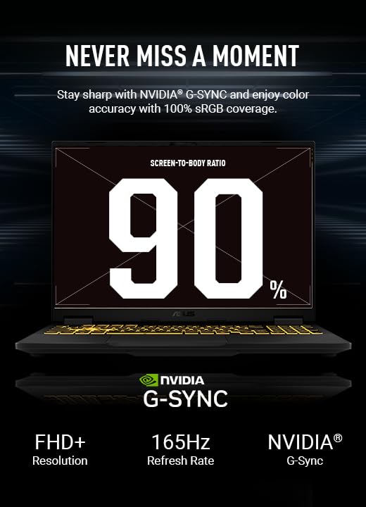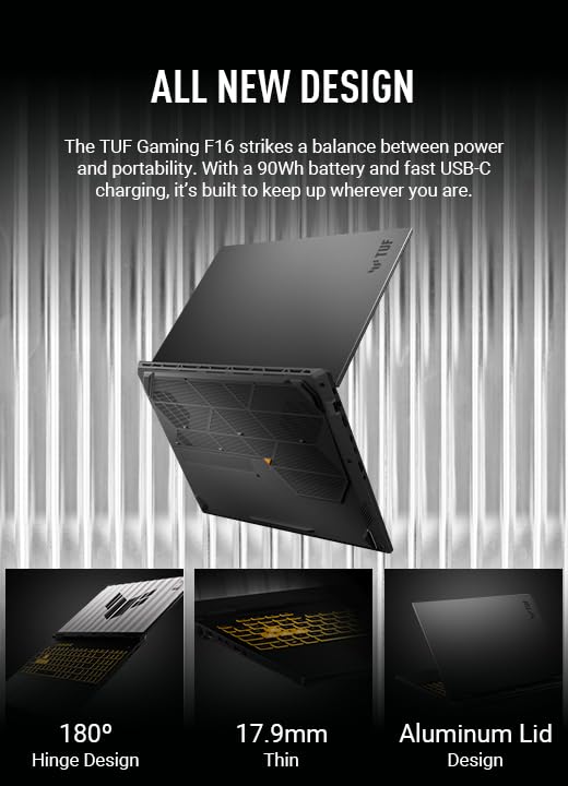 16-Inch FHD+ 165Hz IPS Display with Adaptive-Sync: Immerse yourself in the action with the ASUS TUF F16 gaming laptop's 16-inch FHD+ IPS display. With a 165Hz refresh rate and 16:10 aspect ratio, it delivers smooth, fluid visuals, while Adaptive-Sync synchronizes the display with the GPU to eliminate lag, stuttering, and screen tearing. The 100% sRGB color gamut ensures vibrant, accurate colors, bringing games, movies, and content to life with stunning clarity