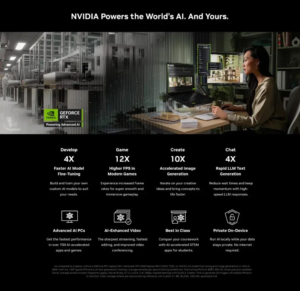 NVIDIA GeForce RTX 5060 GPU with DLSS 4 & Ray Tracing: Elevate your gaming experience on the ASUS TUF F16 gaming laptop with the NVIDIA GeForce RTX 5060 GPU. Featuring DLSS 4 technology for boosted frame rates and real-time ray tracing, it renders lifelike lighting, shadows, and reflections that immerse you in a hyper-realistic gaming world. Every scene comes to life with stunning detail
