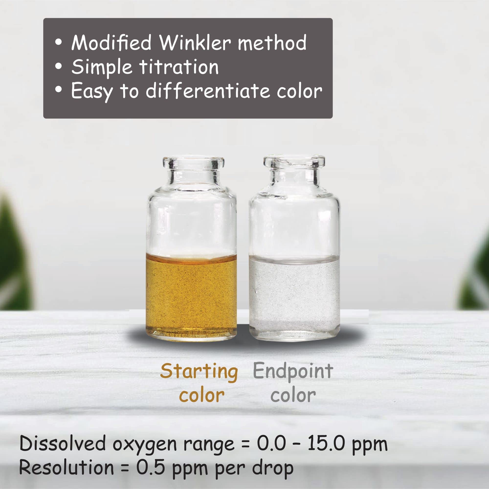 Determine the oxygen concentration in water samples mainly for aquarium and aquaculture. The water sample can be freshwater and seawater. Dissolved oxygen is essential for the survival of all aquatic organisms. With the modified Winkler method by titration of this test kit, the testing can be very precise and quick and easy in use.