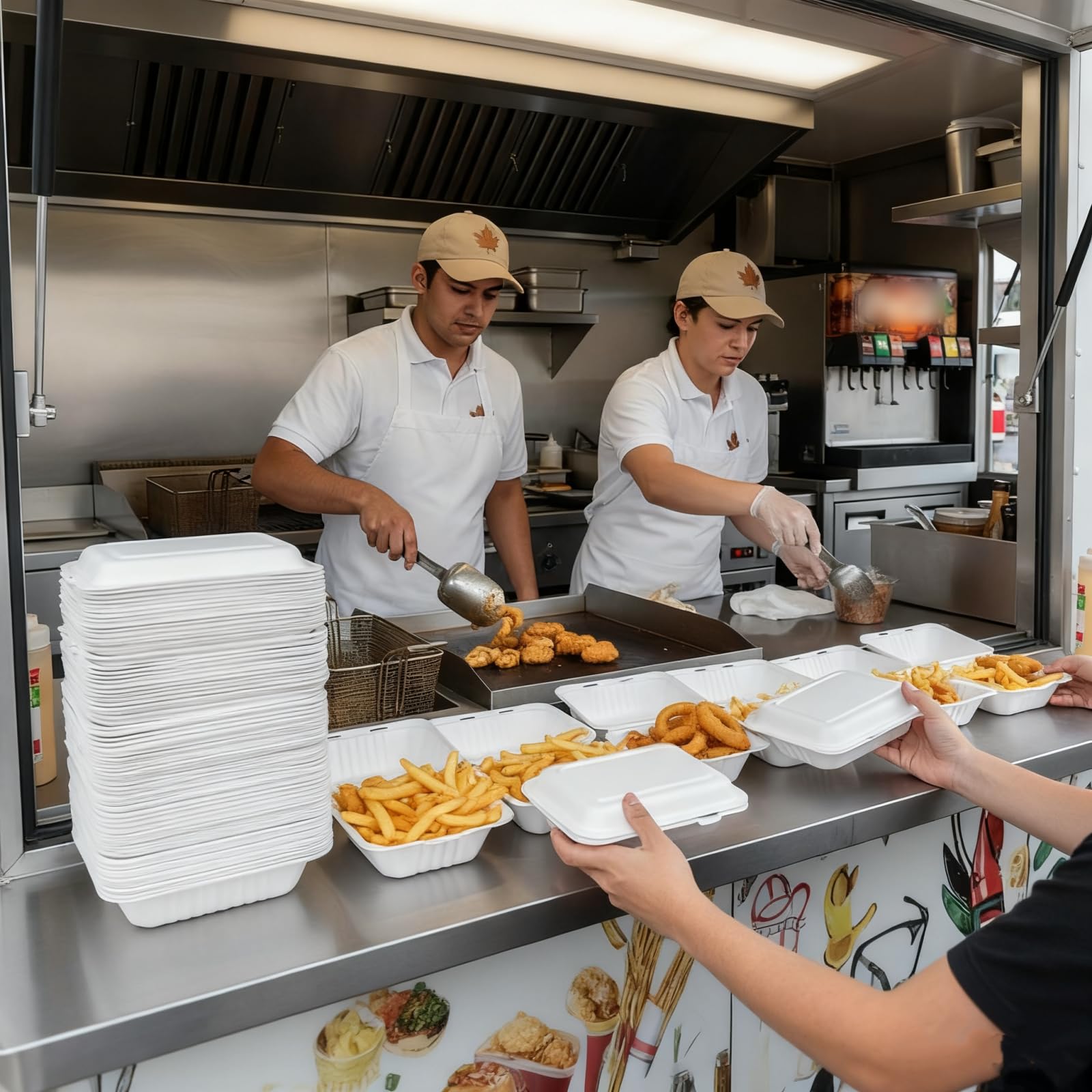 𝐌𝐮𝐥𝐭𝐢-𝐔𝐬𝐞: Disposable takeout boxes are suitable for packing meals for cafe, food truck, or catering business needing reliable to-go packaging for lunches and dinners. Ideal for catering events, parties, and picnics where disposable convenience is essential.