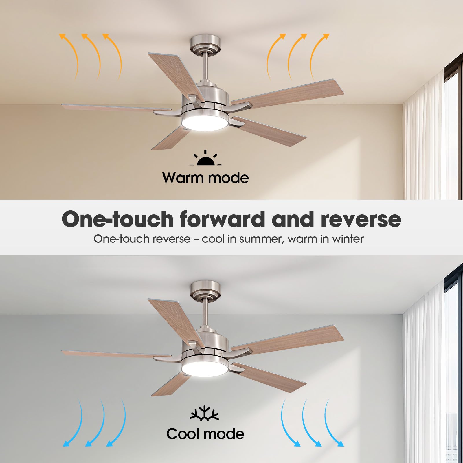 Efficient 6-Speed Fan with Smart Controls: Choose from 6 adjustable speeds to suit your comfort. Easily control 52 inch ceiling fan with light using the included remote or our user-friendly app.