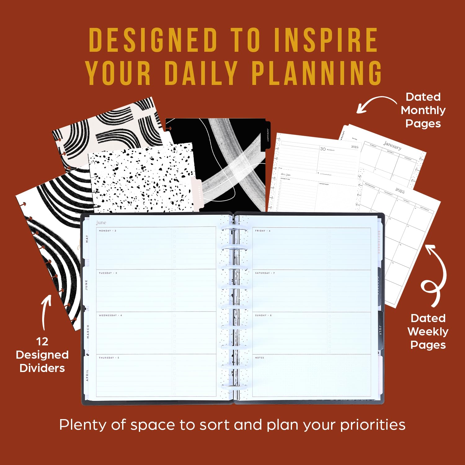 2025 PLANNER: Our classic-size planner is a classic for a reason! It has the perfect amount of space for writing, planning, and prioritizing projects. This 2025 daily planner features modern black-and-white designs. Carry it on your commute to school or work to always have your plans on hand.