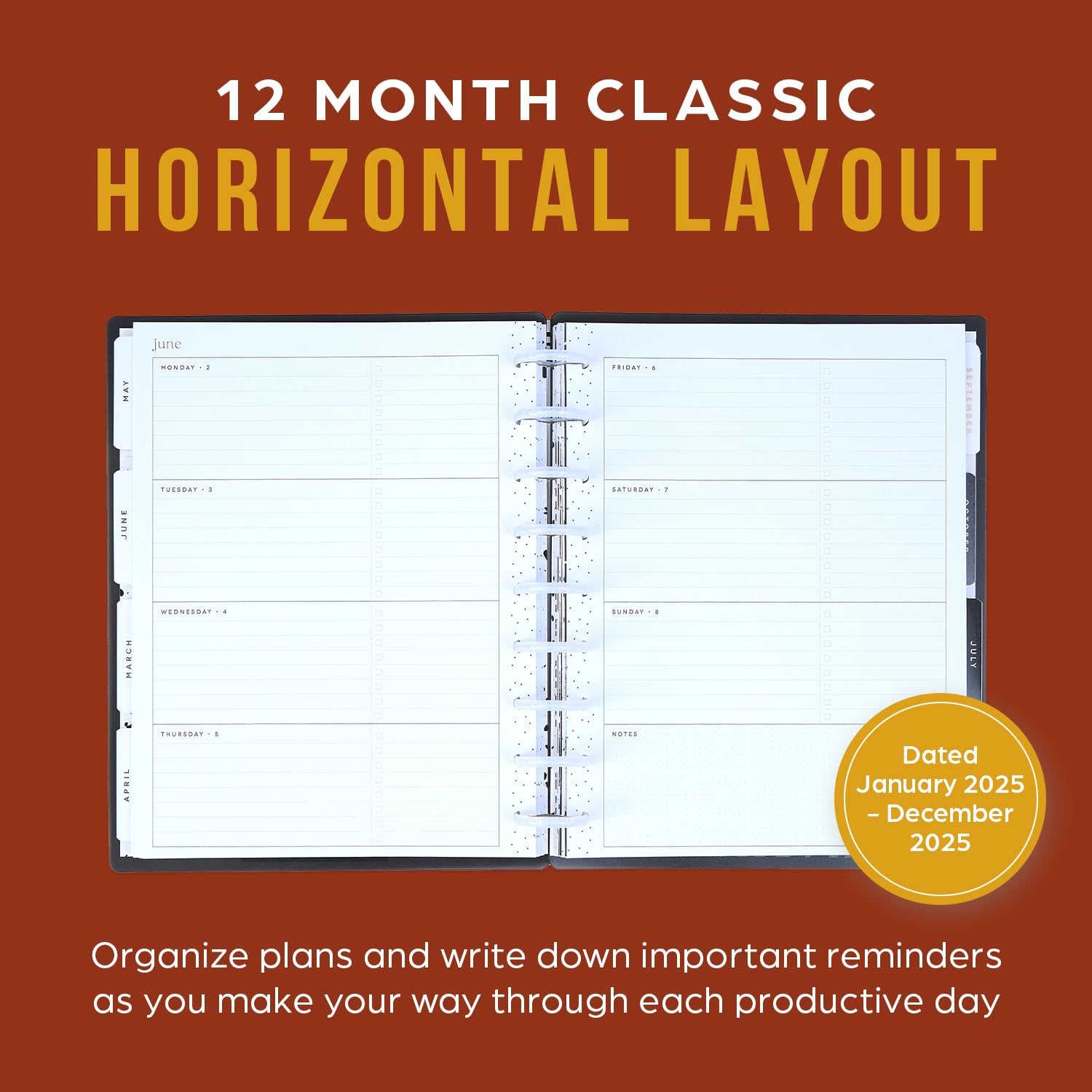 HORIZONTAL LAYOUT: This 2025 calendar planner for school or work was made for the traditional planner! The simple horizontal design has daily lined boxed spaces where you can write out important plans and priorities for the day.