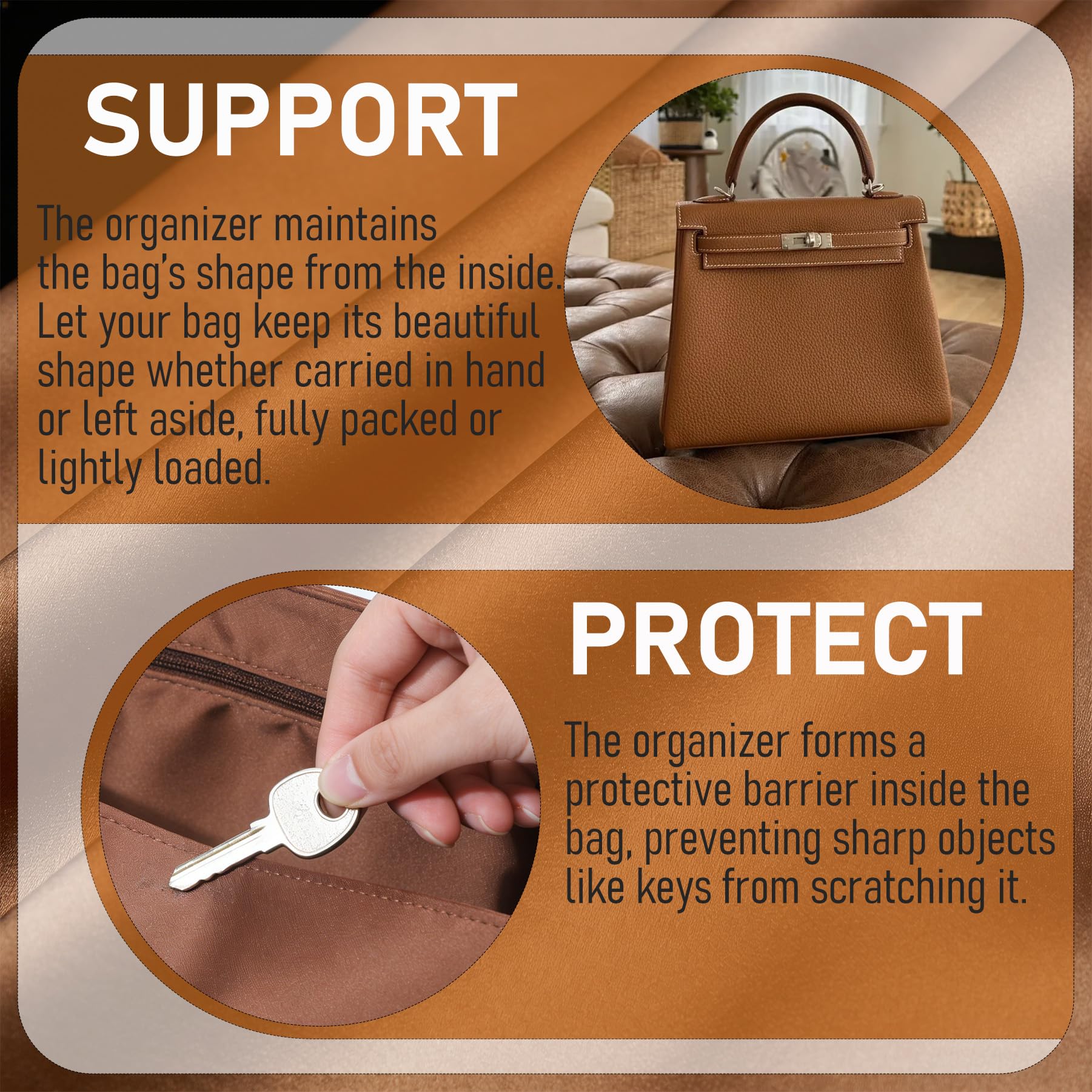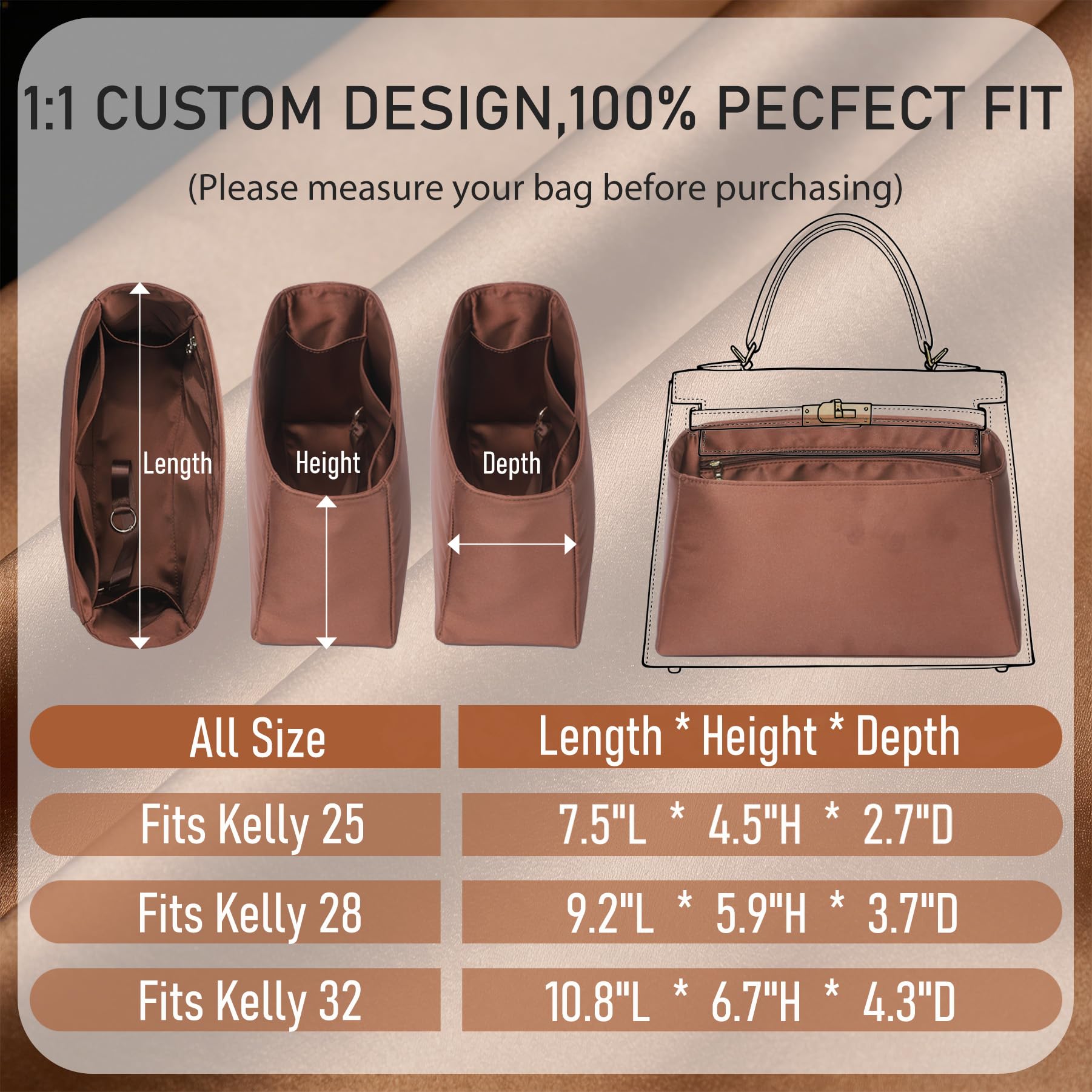 Custom Fit For Hermes Kelly Bags: This OAikor purse organizer is designed exclusively for Kelly 25 (organizer: 7.5 *4.5 *2.7 in), for Kelly 28(organizer: 9.2 *5.9 *3.7 in), and for Kelly 32 (organizer: 10.8 *6.7 *4.3 in) bags. Our purse insert for Kelly contours to the bag's shape with reinforced corners. The non-slip base keeps it securely in place during movement