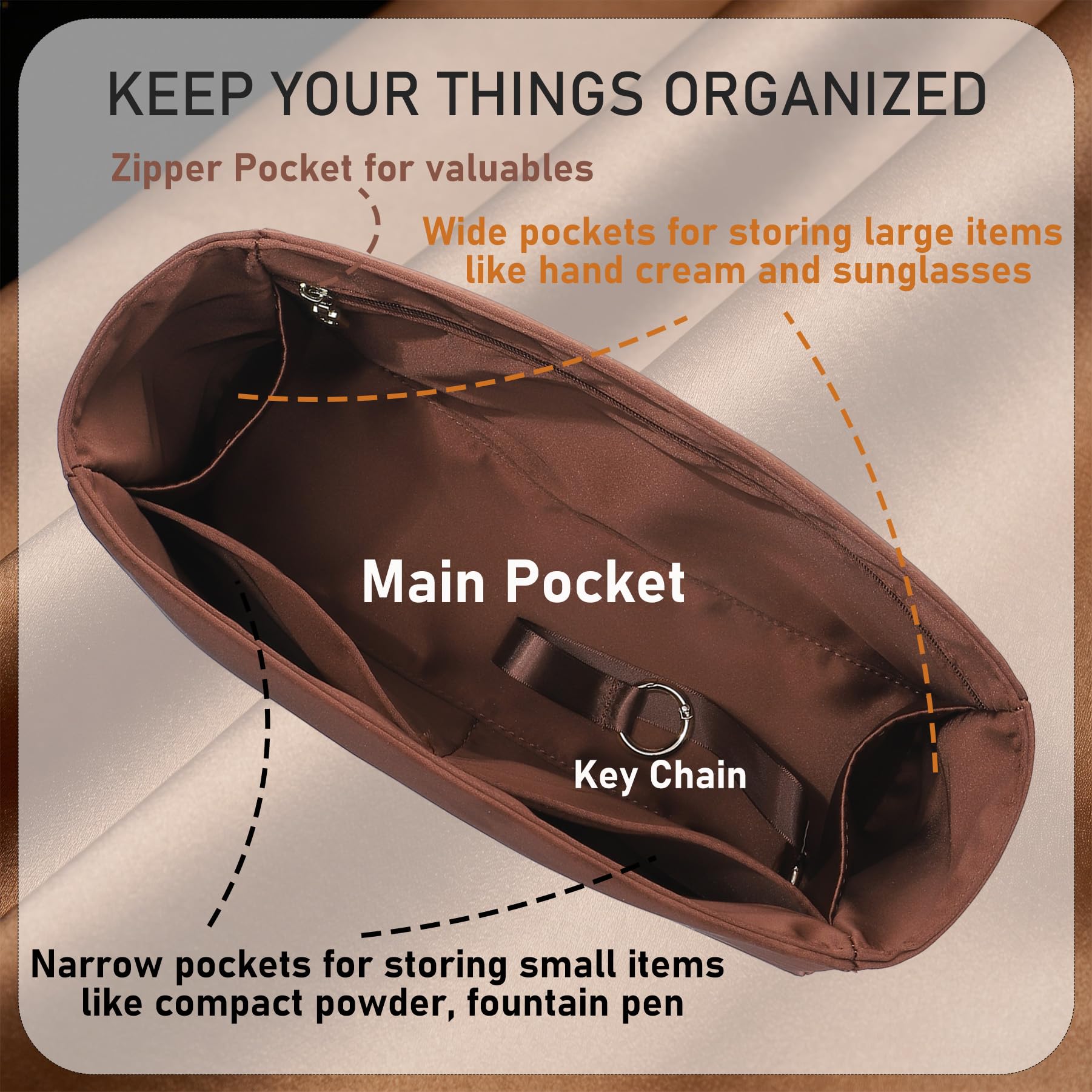Smart Storage Pockets: The tote bag organizer insert has 6 dedicated compartments including a secure YKK zippered pocket. No more digging—your phone, lipstick, cards, and keys each have a designated placep. Innovative keychain design with anti-lost features—never misplace your keys again, keep your belongings in order, while not taking up more space inside the bag, allowing for a higher rate of internal space usage and the ability to replace items that need to be taken out at any time