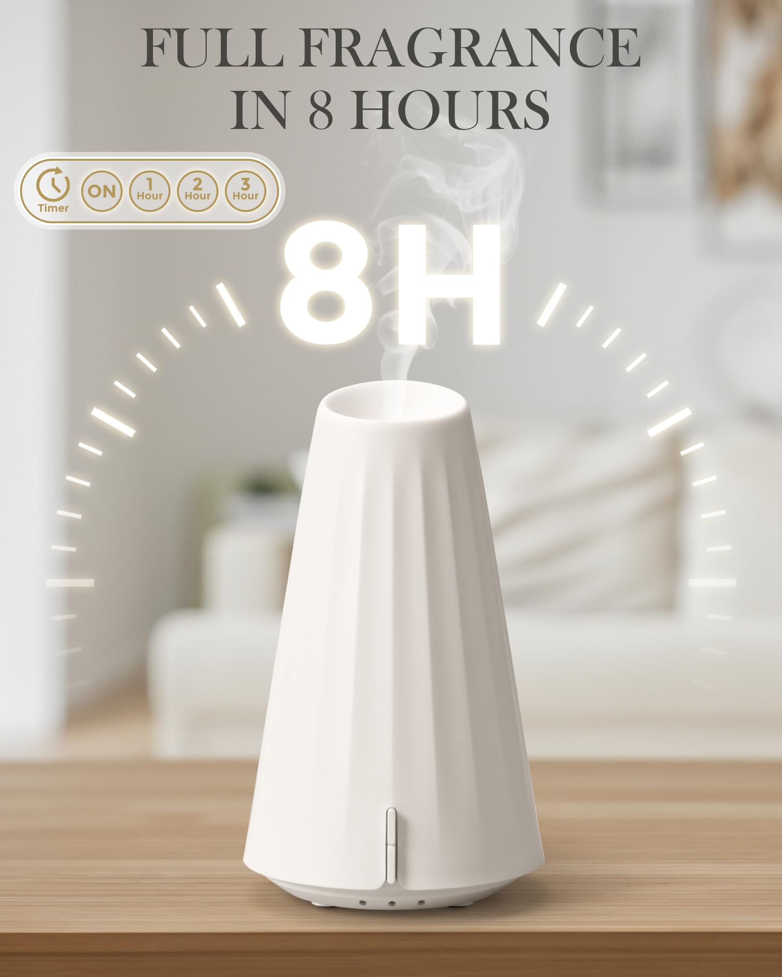 【3 Timing Modes & Automatic Shutdown When Waterless】 Customize your ambiance with 1/2/3-hour timer settings. Enjoy short bursts of fragrance or prolonged diffusion to match your needs.