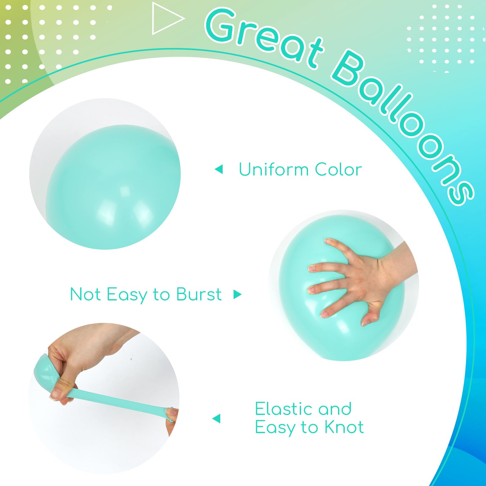 Good Balloons: The blue and green balloons are made from good latex, which is easy to inflate and less likely to pop. It is suggested to use a hand pump for quicker inflation, but do not overinflate to keep them in good shape