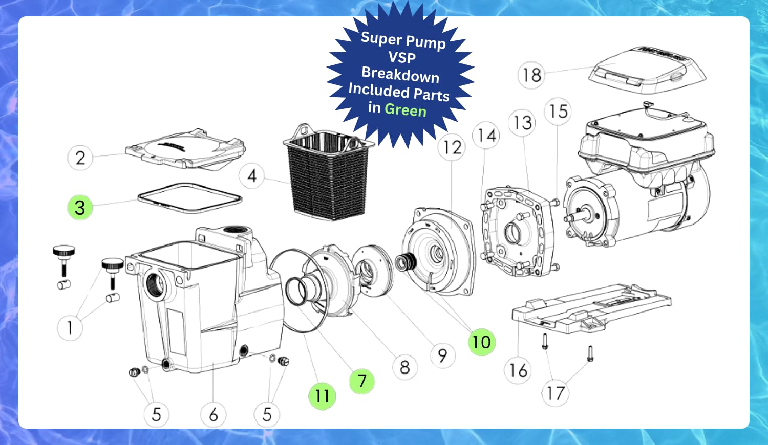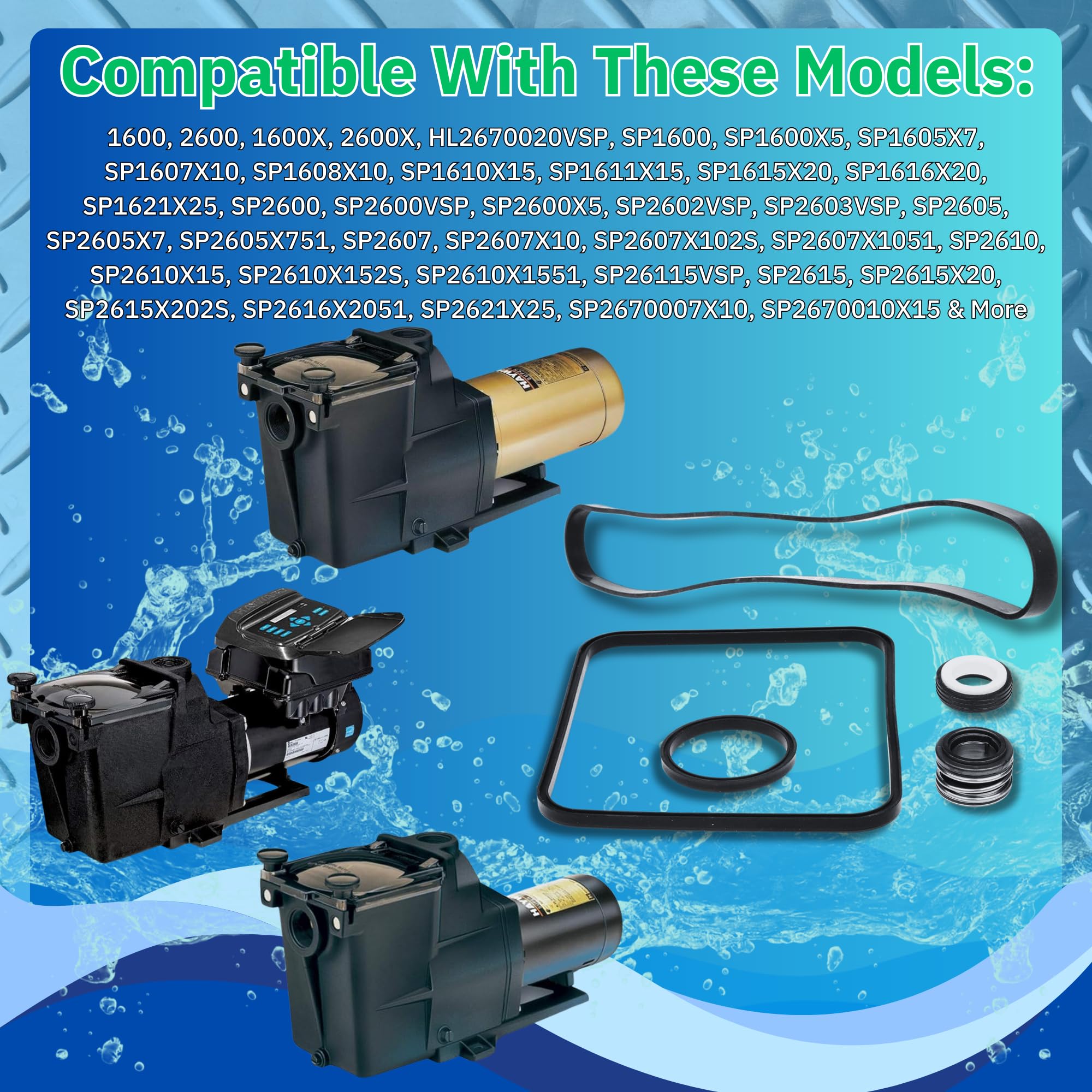 Fits all Super Pump SP1600, SP2600 in Regular, X, Dual Speed and VSP Models in all HP (1/2 HP, 3/4 HP, .85 HP, 1 HP, 1 1/2 HP ,2 HP ,2 1/2 HP & More). See picture 2 to compare. DOES NOT FIT Super Pump II and MaxFlo Pumps (a few seals may fit but you will need more).