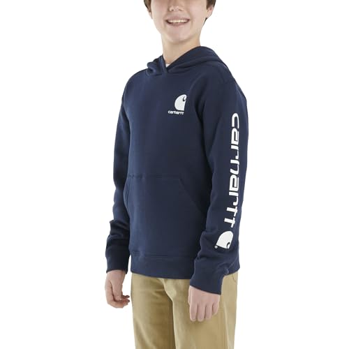 Description As strong as it is soft, this boys' hoodie has serious comfort. No unnecessary details. Just warm fleece and a simple, durable Carhartt design. We could keep talking, but why?