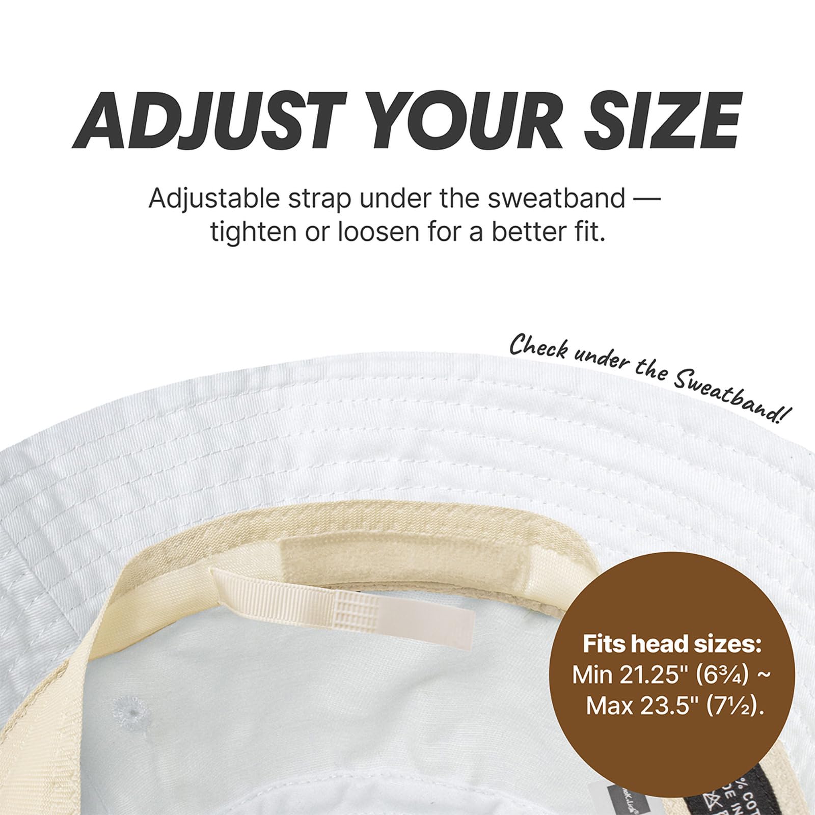 [ADJUSTABLE COMFORT] – Hidden inside the sweatband is a clever hook-and-loop strap that lets you tighten or loosen the fit. Whether you're heading to the beach or the city, enjoy a hat that moves with you and never feels off-size.