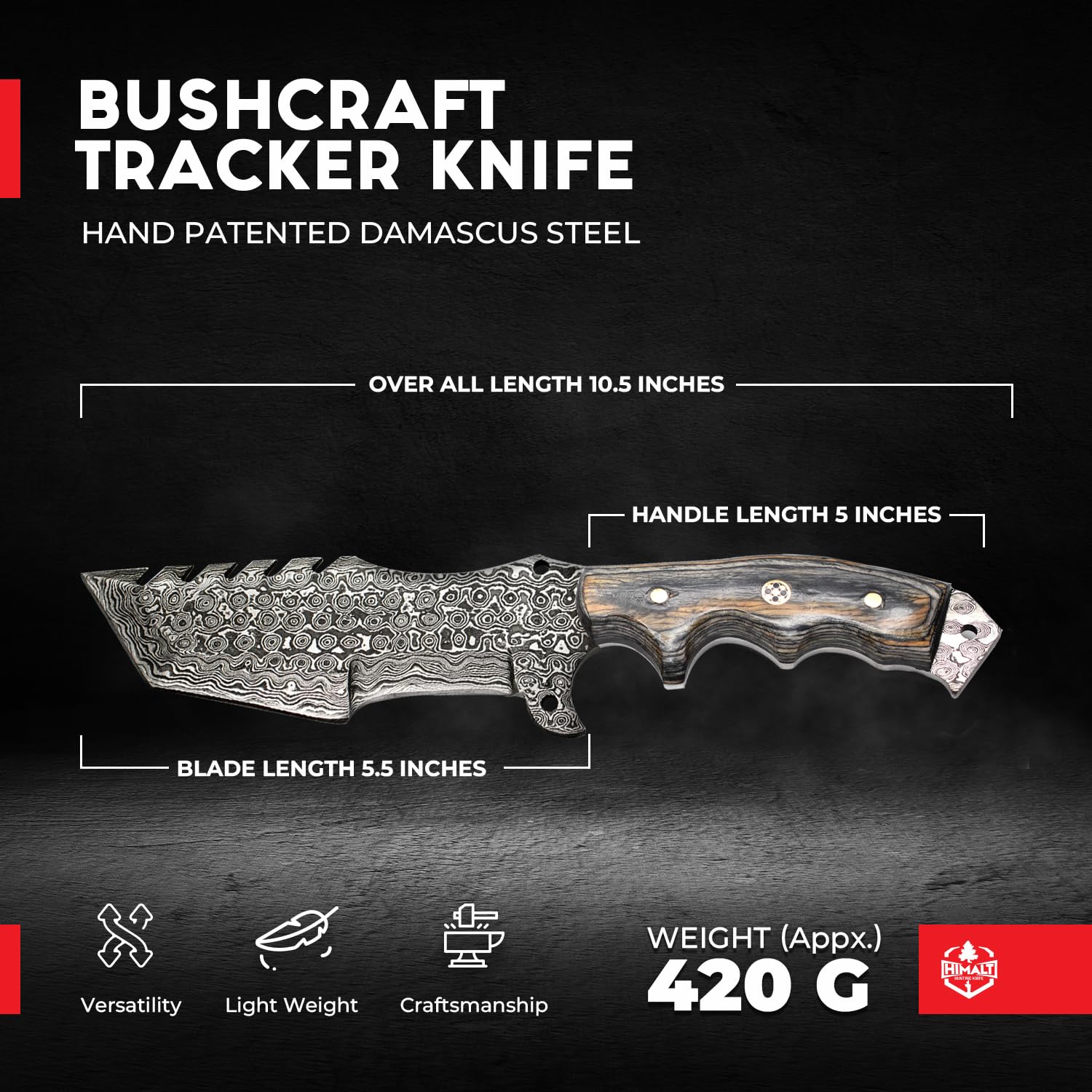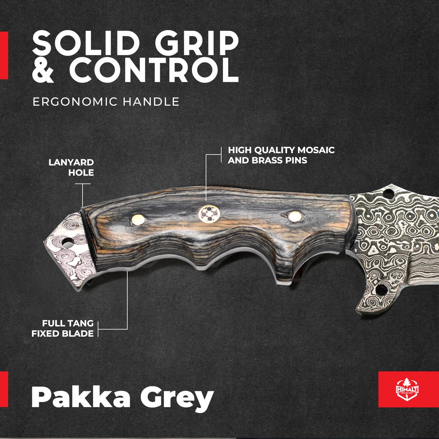 Ergonomic Pakka Grey Handle: Our tracker knife has ergonomic Pakka Grey handle that fits perfectly in your hand and gives a firm hand grip.