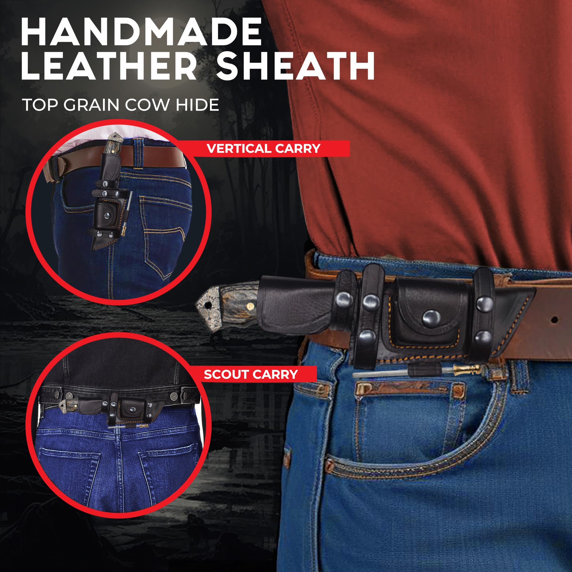 Precision Crafted Dimensions:Our fixed blade tactical gear measures 10.5 inches overall, with a 5.5-inch blade and a 5-inch handle. The 5mm blade thickness ensures durability without compromising maneuverability.