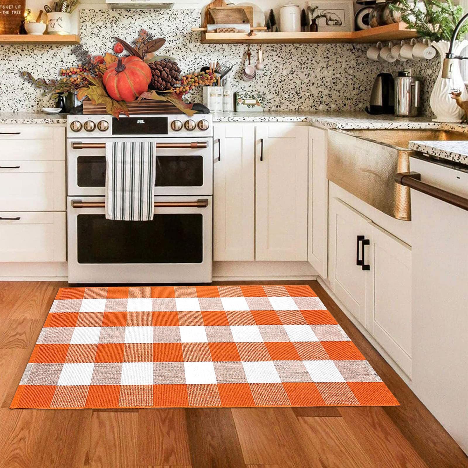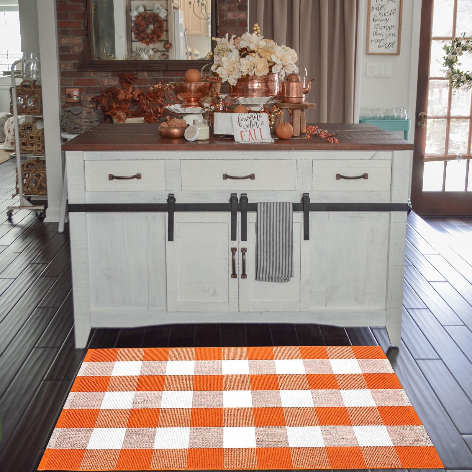 👍Cotton Material:Hand-woven buffalo plaid rug is made of fabric cotton, the thick cotton material is elegant and luxurious, Its durability and comfort make it the ideal outdoor rug choice.