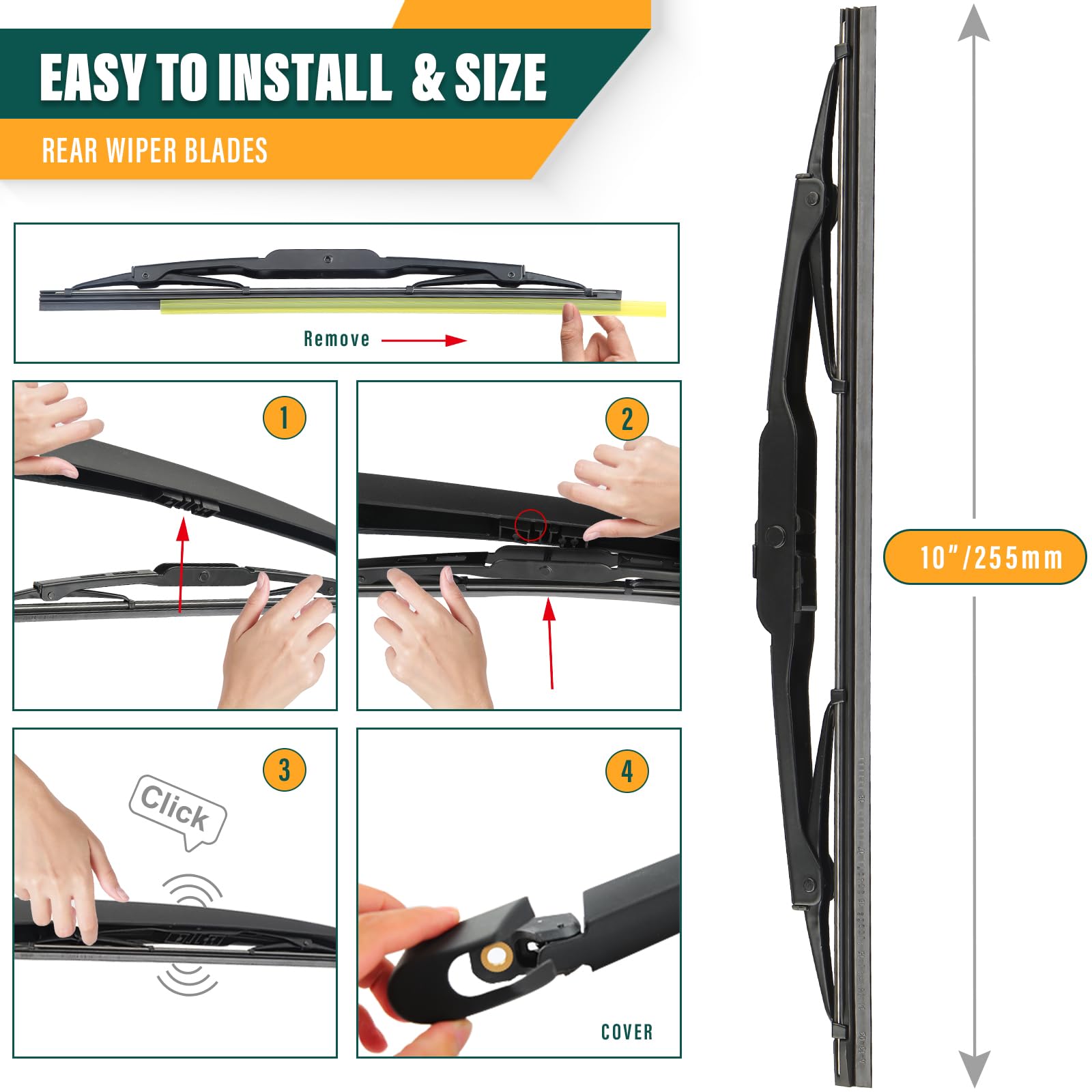 【TOOL-FREE 2-MINUTE INSTALLATION】True "Plug & Play" design. Simply align the dedicated slot with your wiper arm and push until you hear a "click" lock. No tools or modifications required. Comes with a step-by-step installation manual inside the package for quick, frustration-free setup.