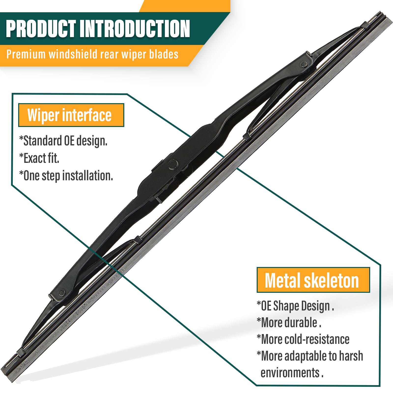 【GRAPHITE + MICRO-PTFE COATING】Grade 5A natural rubber with proprietary cross-linked Graphite and Teflon (PTFE) coating. Reduces friction by 60% to prevent squeaking or chatter. Ensures a crystal-clear wipe even on treated windshields or in heavy downpours for maximum safety.