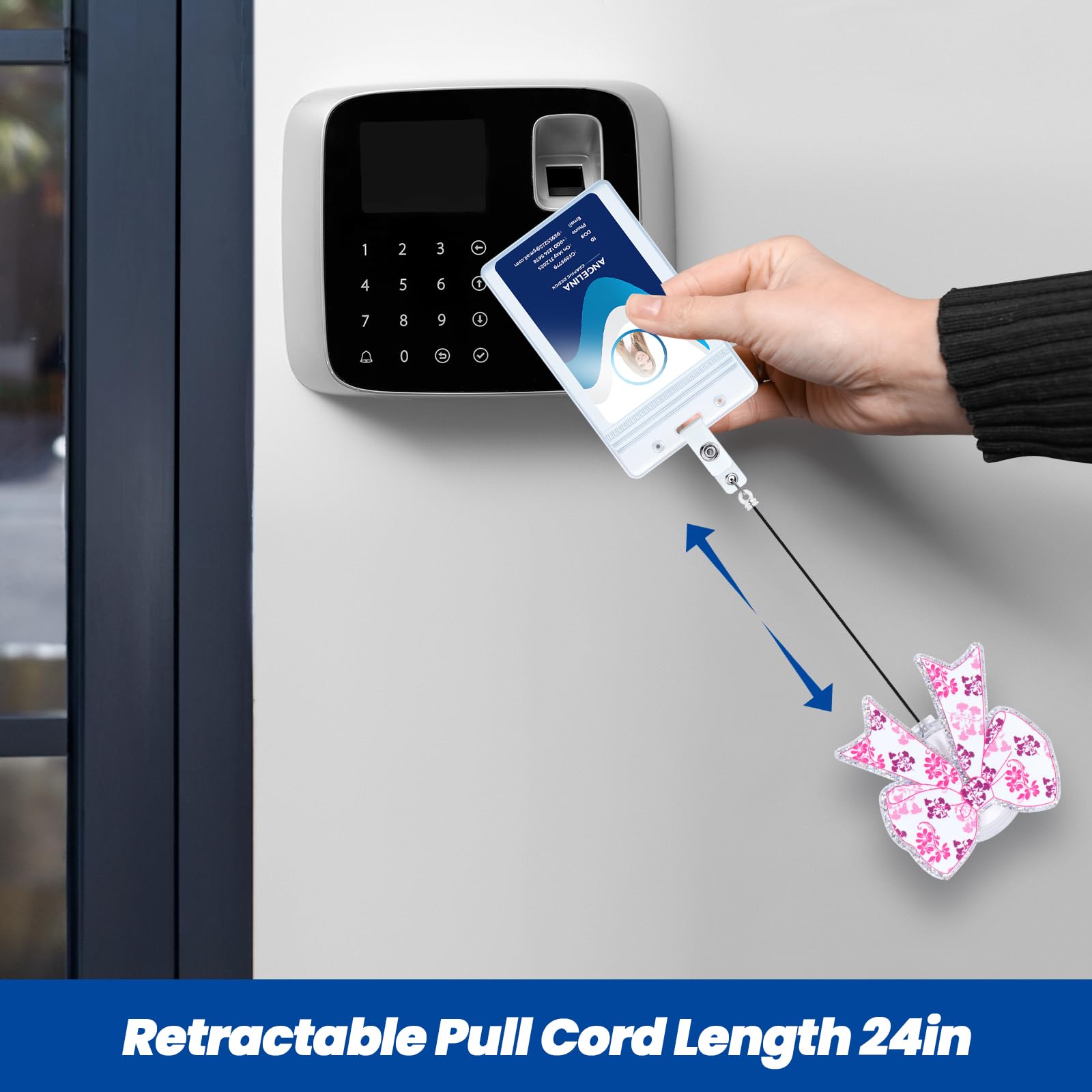 Retractable Cord: The retractable reel cord extends a maximum of 24 inches, more than enough to reach comfortably as far as your arm can reach. The flexible retractable feature enables you to effortlessly display your badge without removing it, enhancing your efficiency at work.