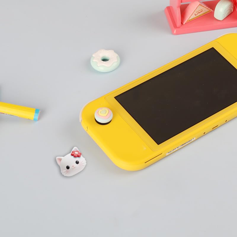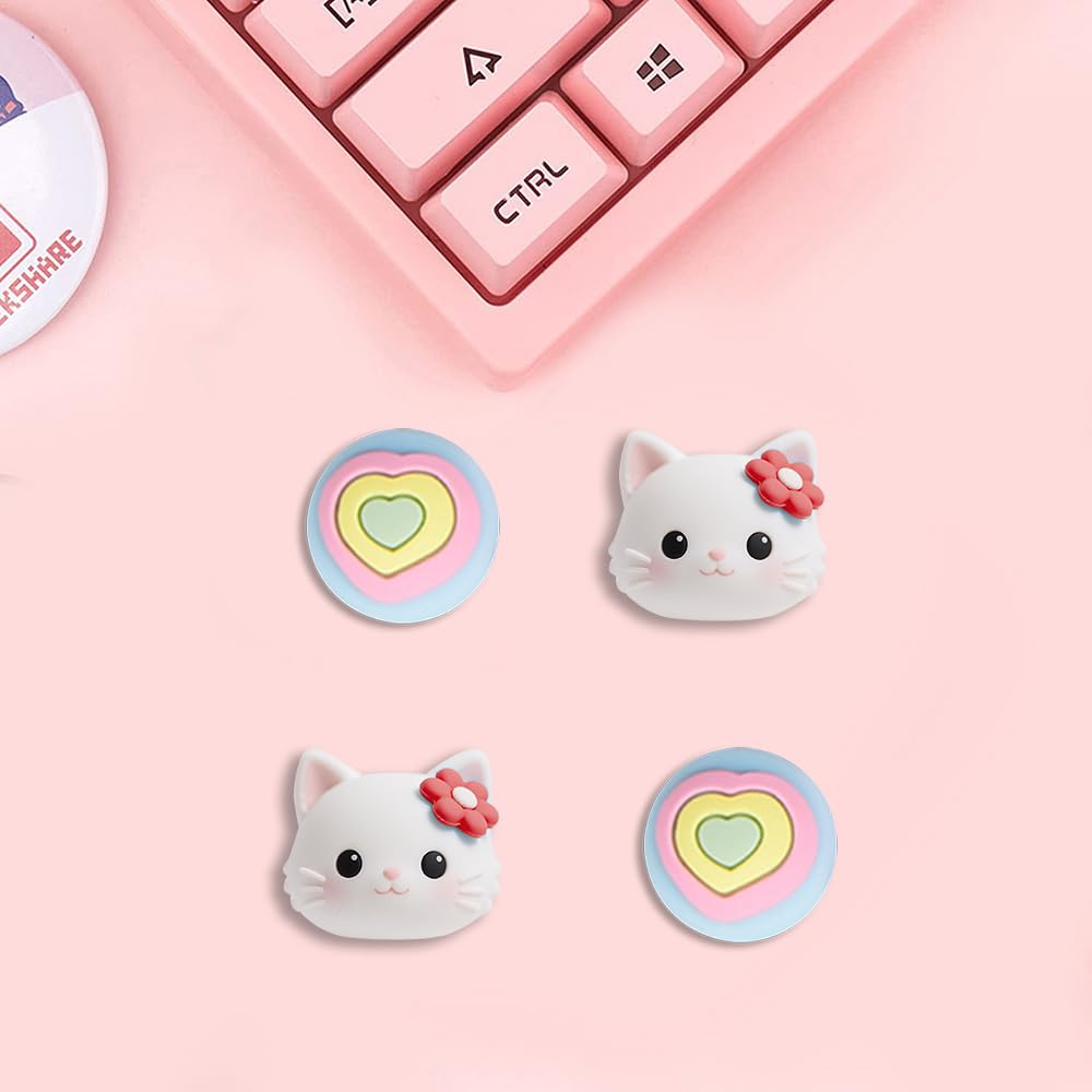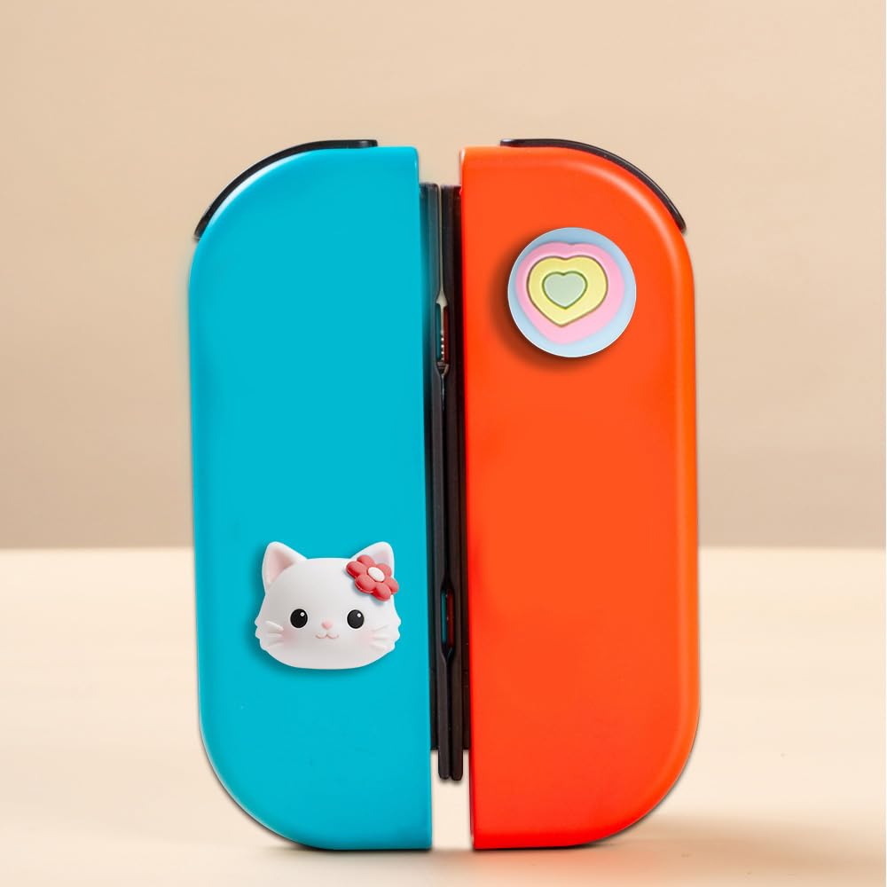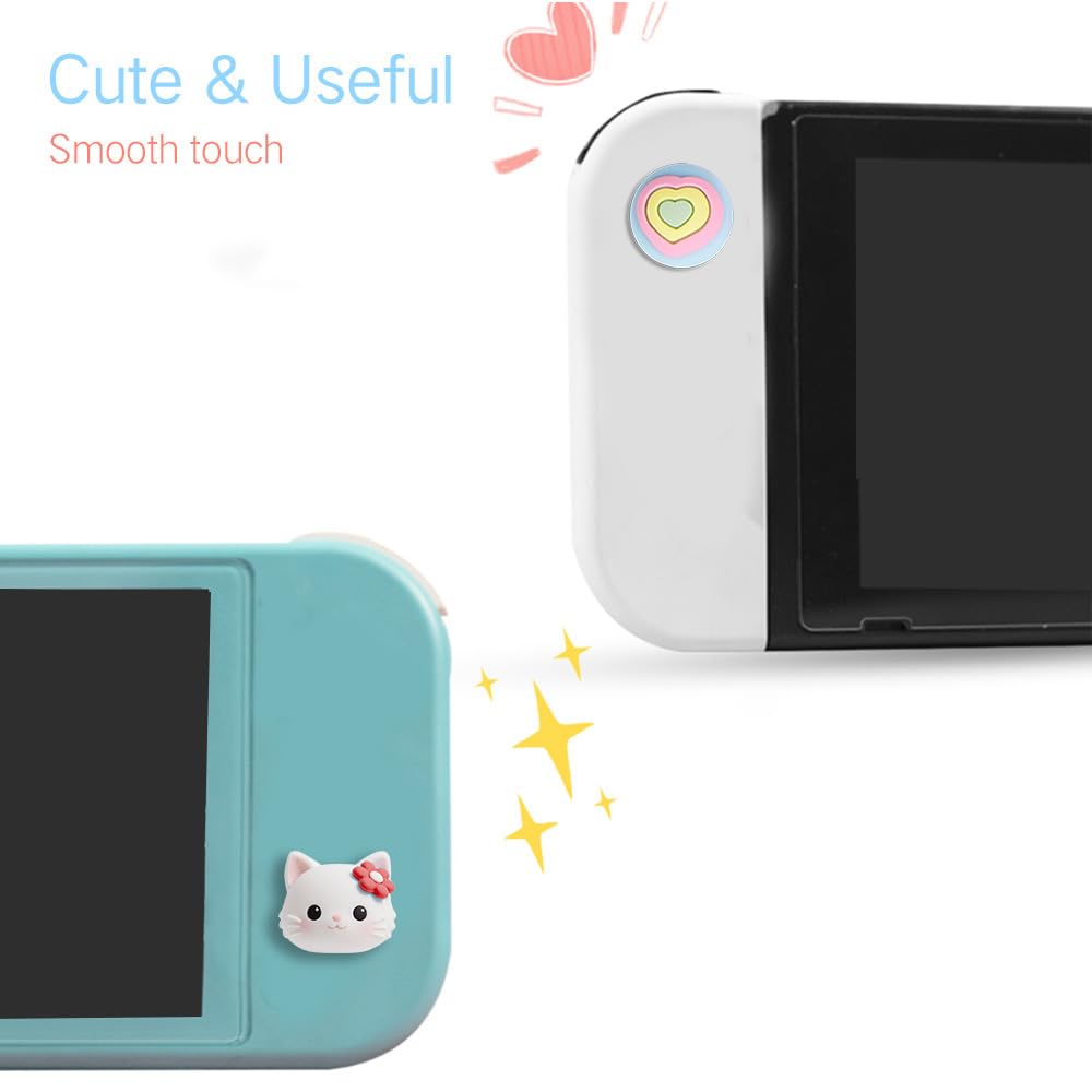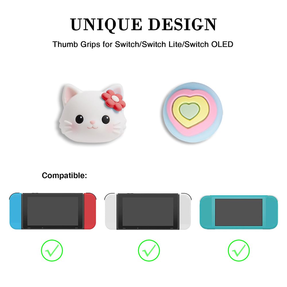 PERFECTSIGHT Cute Thumb Grip Caps 4PCS Compatible with Nintendo Switch & Switch Lite,Soft Silicone Cover for Joycon Controller (Kitty and heart) Features: Cute lovely design, eye-catching decoration-- Cute tree leaf design makes your Switch & Switch Lite more eye-catching. Perfect non-slip design -- Increase the friction between finger and controller. Prevent your fingers from slipping and provide more accuracy and sensitivity. Easy Installation -- Just turn the grips inside-out and pop over the sticks. Specification: Material: Silicone Compatible models: Switch & Switch Lite Package include: 4* Cute Thumb Grips Caps