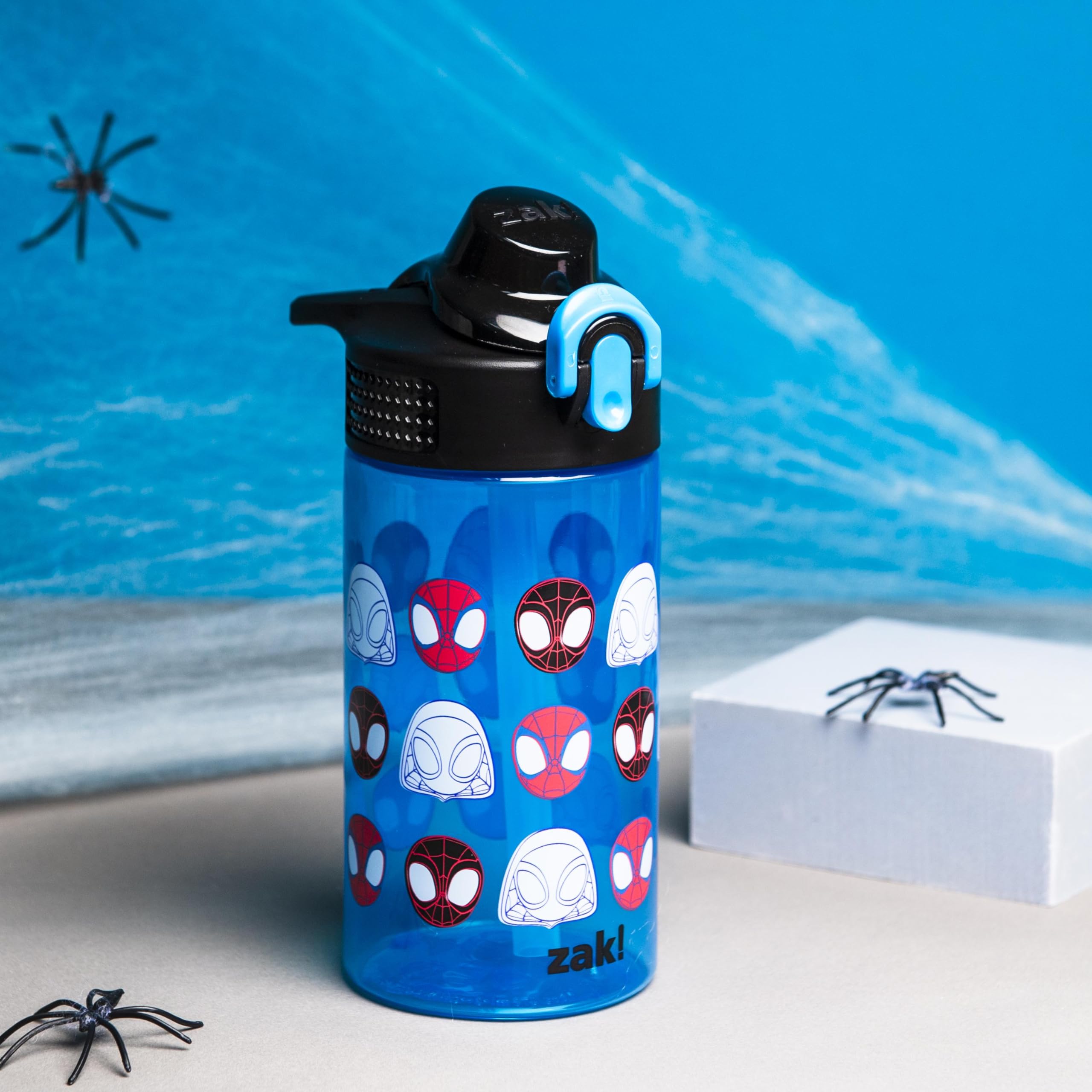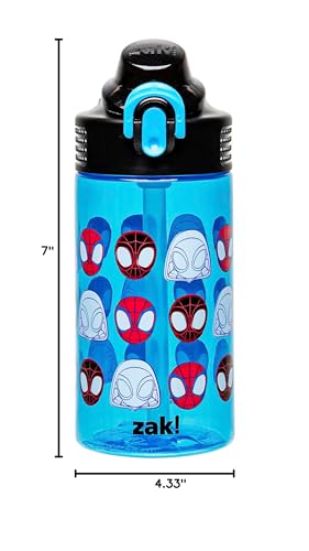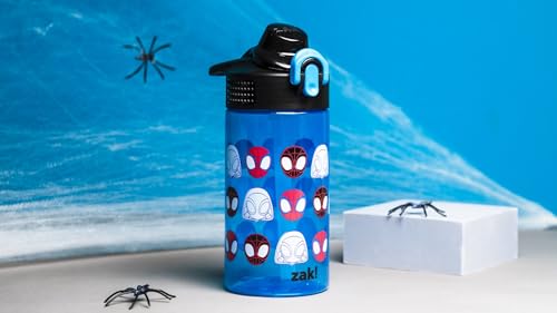 Let kids enjoy hydration with a fun water bottle by Zak Designs! Reusable and Durable Material: Reusable water bottles will last wash after wash—good news for you and the environment! The 16 oz water bottle is made of PP plastic, durable enough for kids to use every day and bring on any adventure. Leak-Proof Lid: The lid screws on securely and won't leak when the spout is closed, though water flows for easy drinking when the spout is open. The easy-open button has a flip-up lock to keep it from activating accidentally. On the Go: The water bottle has a built-in carrying loop on the lid for easy transportation, and with the spout cover to keep the spout clean and closed, it can be tossed into a bag for worry-free travel. Specifications: 16 oz capacity. Made of durable plastic. Dishwasher safe, do not microwave. Length: 4.33-inch, Width: 2.78-inch, Height: 7-inch. Character: Spidey and His Amazing Friends (Marvel Spider-Man).