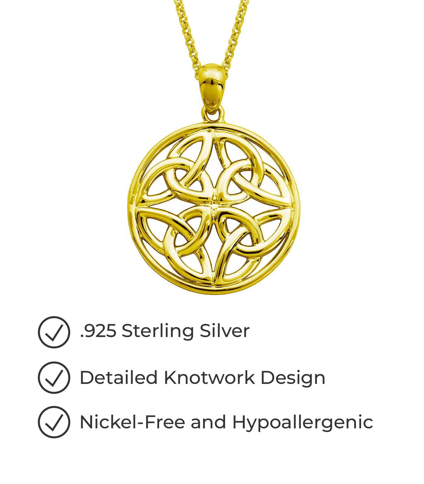 STYLE: Celtic pendant necklace featuring a Triquetra knot is inspired by the interlacing and continuous designs prevalent in Celtic artwork, illuminating the interconnectedness and continuity of life; pendant is 24mm x 24mm and includes 18" rolo chain