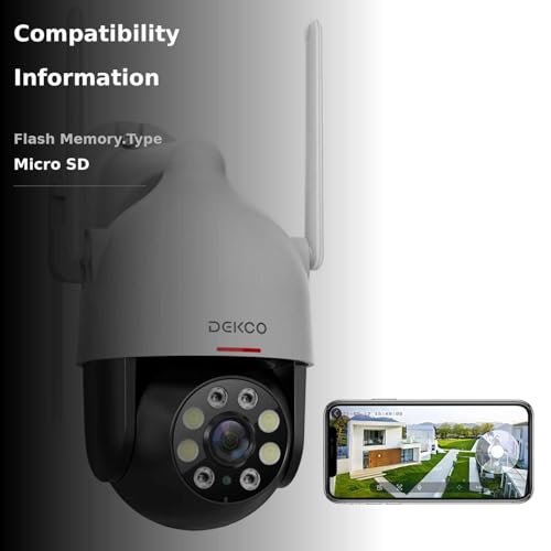 350°Viewing Angle and Remote Monitoring -- DEKCO WIFI security camera wireless outdoor is designed with the rotation of a vertical 90 degrees and a horizontal 350 degrees; You can remote the security camera to monitor all-round without blind spots. It's a great choice to protect the safety of your property and family. PTZ camera supports live viewing on your mobile phone through downloading free App "DEKCO".(The camera is corded electric camera, and not a battery camera. )