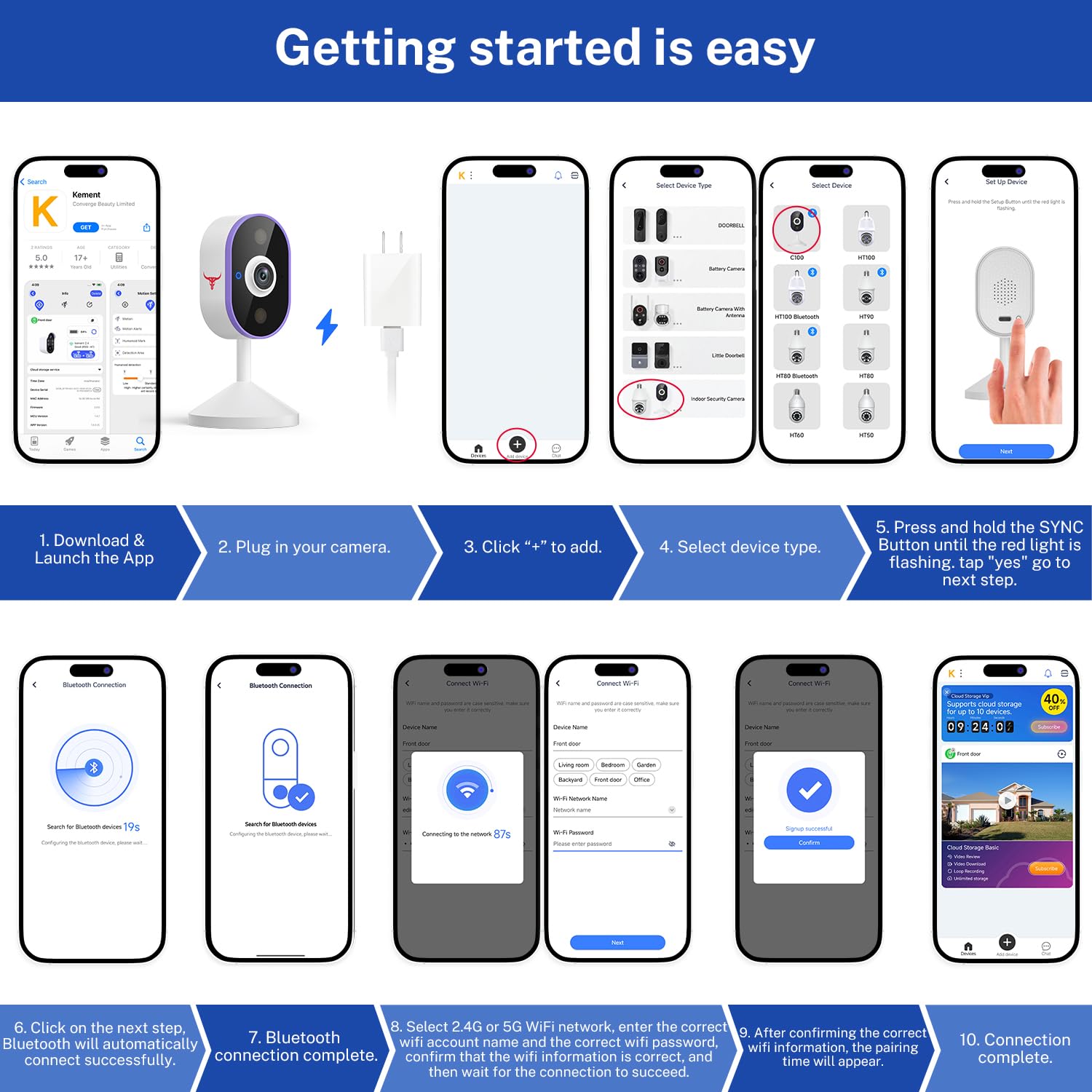 Mobile App Control: View and manage camera via smartphone app (iOS/Android).