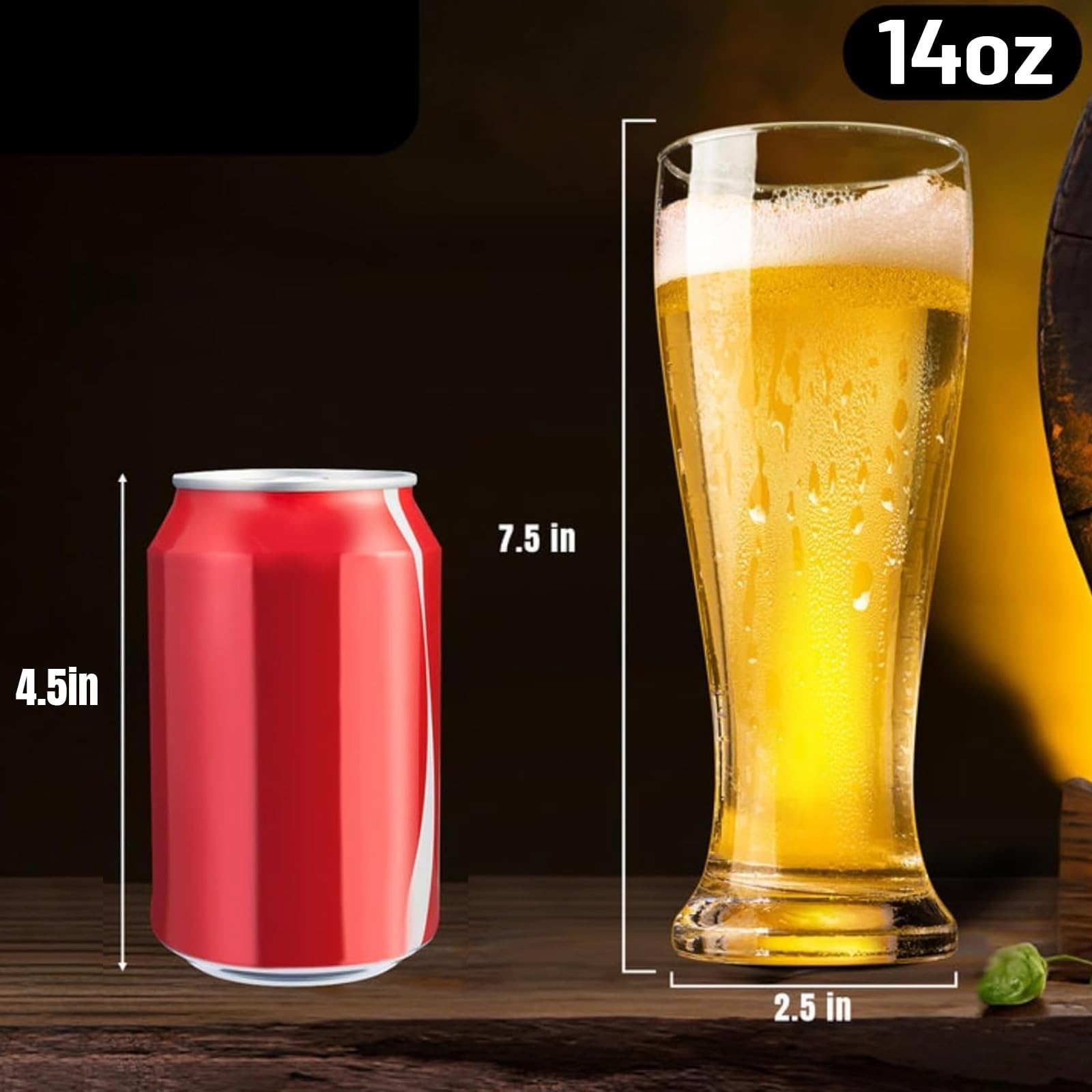 Beer Glasses Set: The classic beer glasses set includes two 14 oz pint glasses, 7.52 inches tall and 2.56 inches in diameter at the base, each crafted with a tall, elegant design perfect for enjoying your favorite brews. Whether it's a crisp pilsner or a craft IPA, these glass cups offer a great experience.