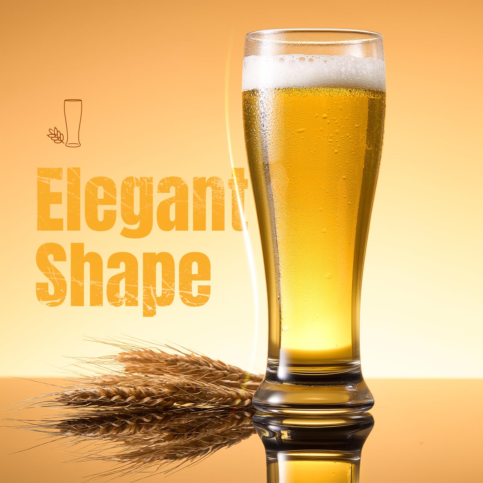 Elegant Design: Our pint glasses are designed with tall, slender shape design, and the glass cups offer a secure grip and enhanced stability with a thick, balanced base. The unique shape not only looks sophisticated but also enhances aroma and head retention, making these glass cups ideal for wheat beers, lagers, and pale ales.