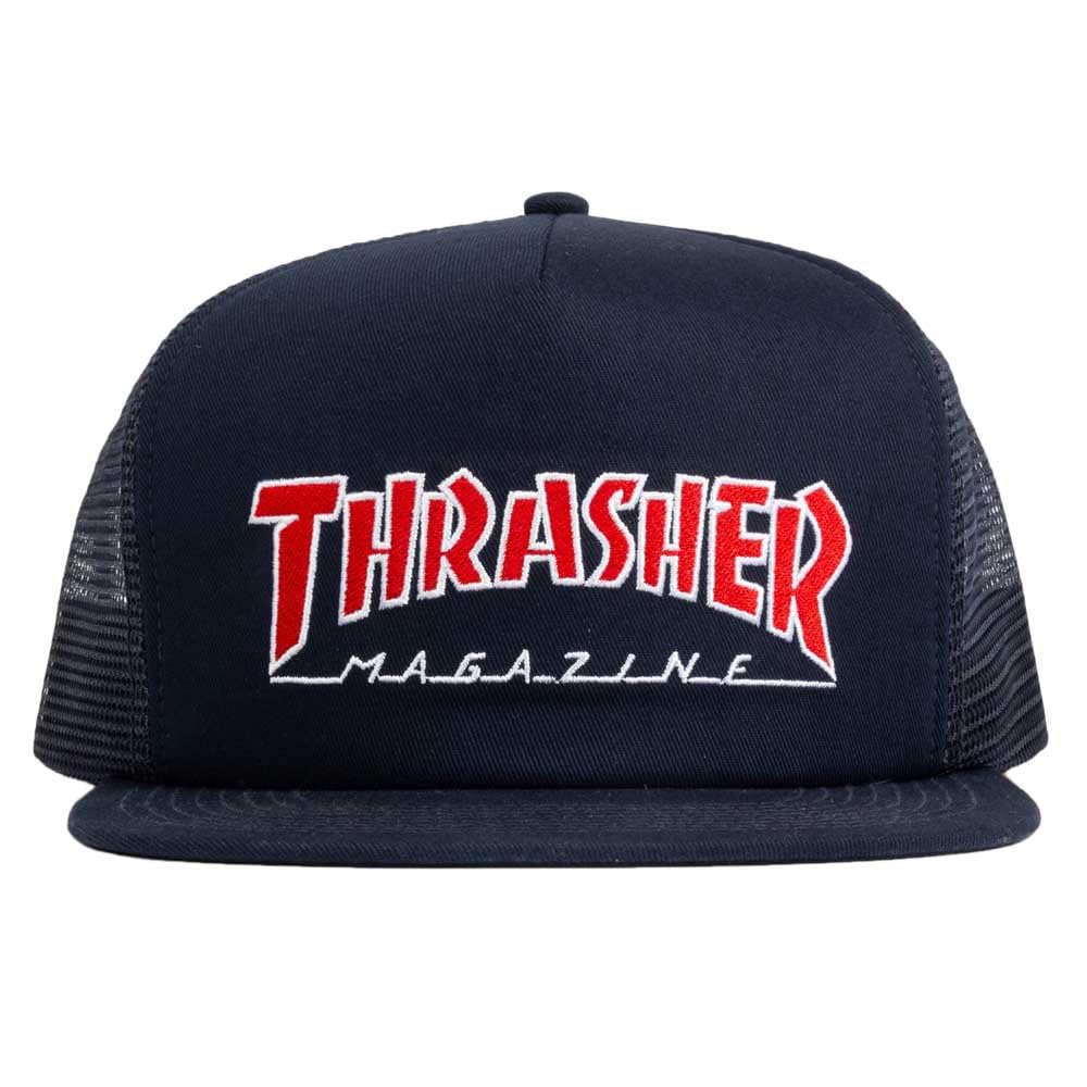 Description Black Thrasher snapback hat with embroidered logo and rope detail on the crown. Features an adjustable plastic snap closure at the back, suitable for most adults.
