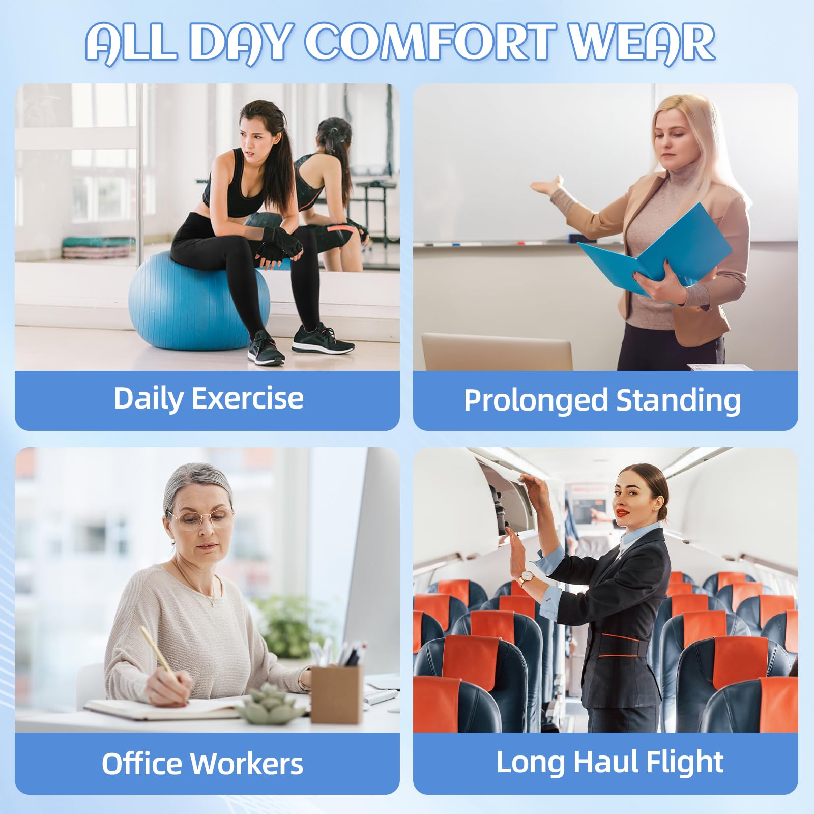 DAILY WEAR: The tight compression stockings provide 360° support for your legs to tighten your tummy, waist and thighs, providing a slimming effect. It is perfect for everyday use for people who stand for a long time or need to maintain posture, such as nurses, teachers, pregnant women, flight attendants, athletes, etc.. Suitable for walking, sitting, standing, travelling and all outfits from casual to work, dressy or formal.
