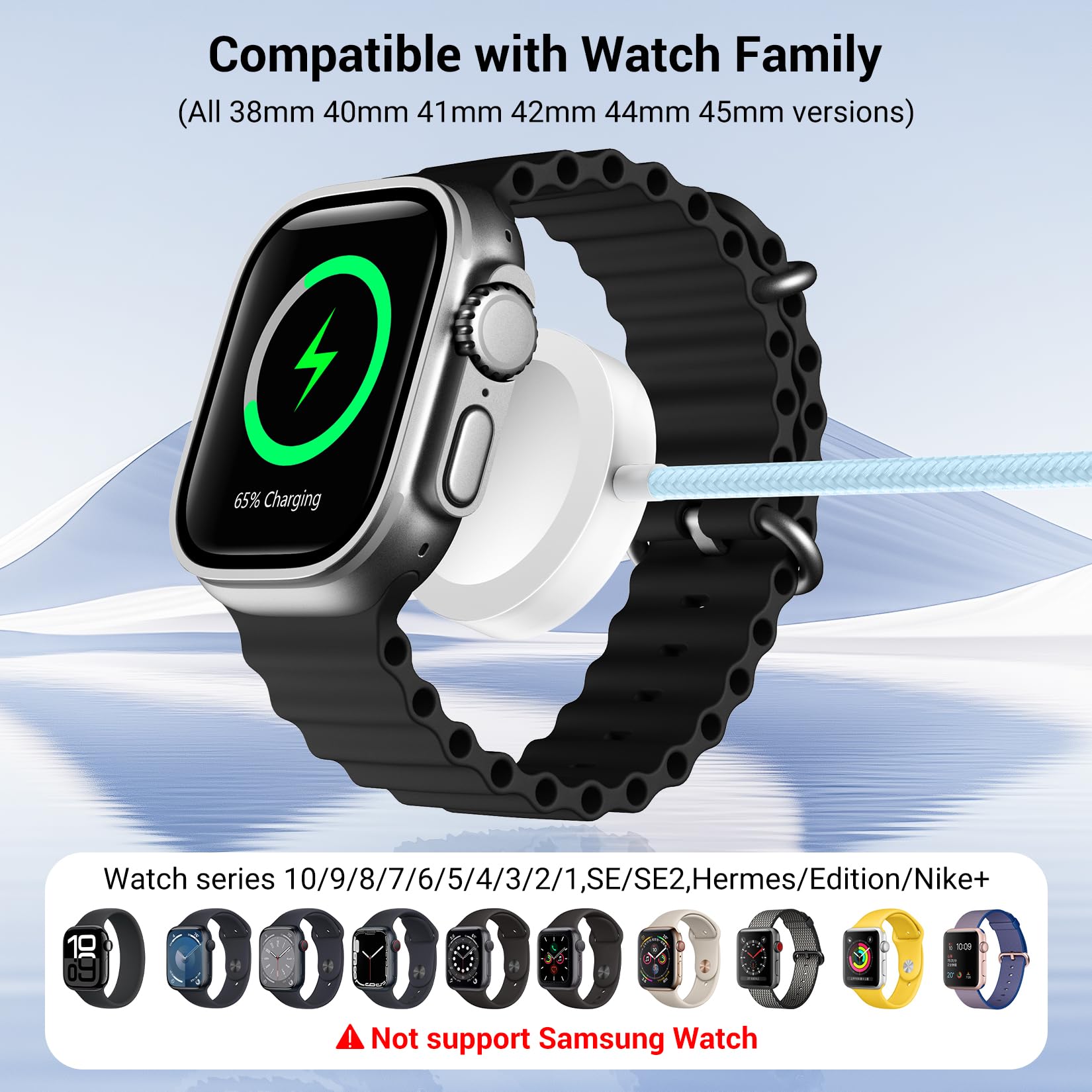[Magnetic Watch Charger] Featuring double chips and integrated magnetic technology, this watch charger makes it very easy to charge your watch. With strong magnetic attraction, simply hold the connector close to the back of the watch, and it will automatically snap into place to charge your watch securely.