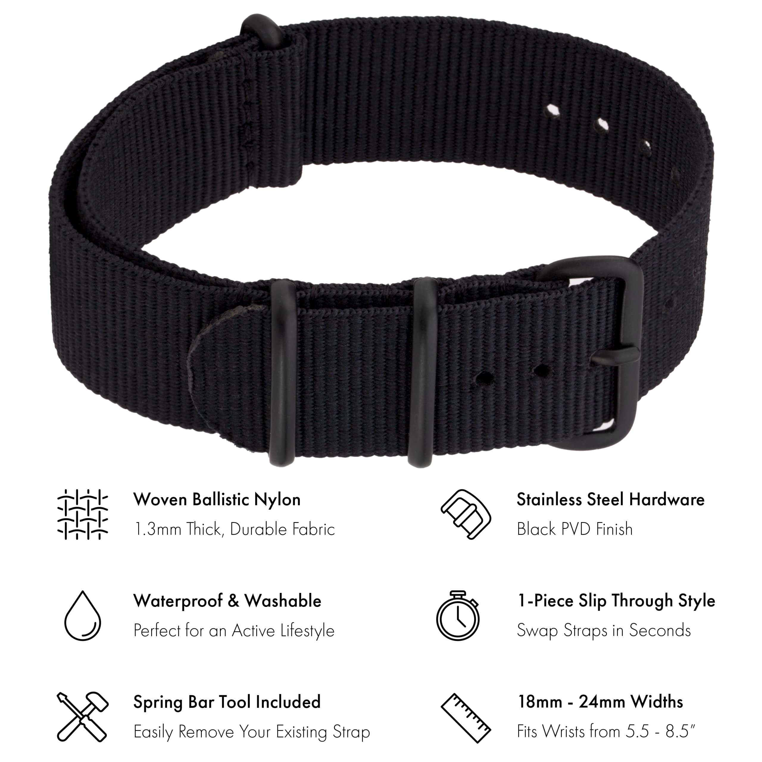 HIGH QUALITY CONSTRUCTION – Available with either silver or black PVD stainless-steel buckle and keeper loops. Heat sealed edges, laser cut holes and color-matched bonded nylon thread resist fraying. The tight woven nylon webbing is waterproof and fully washable for swimming, sports and other outdoor activities.