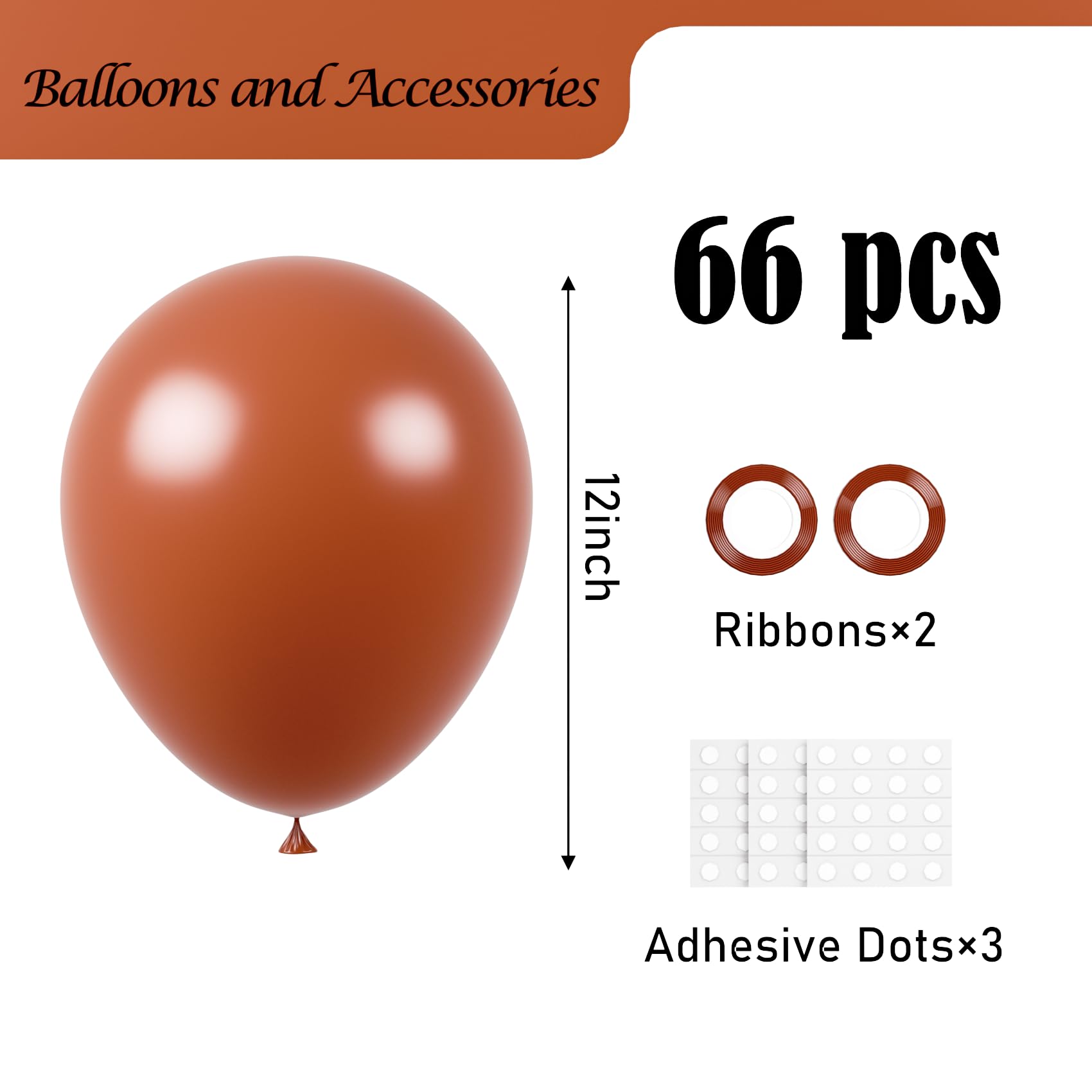 Premium Package: Welcome to the world of coffee brown balloons, where we offer you a set of 66 pack 12 inch boho brown latex party balloons, 3 sheet of adhesive dots, 2 rolls of ribbons to elevate your celebrations