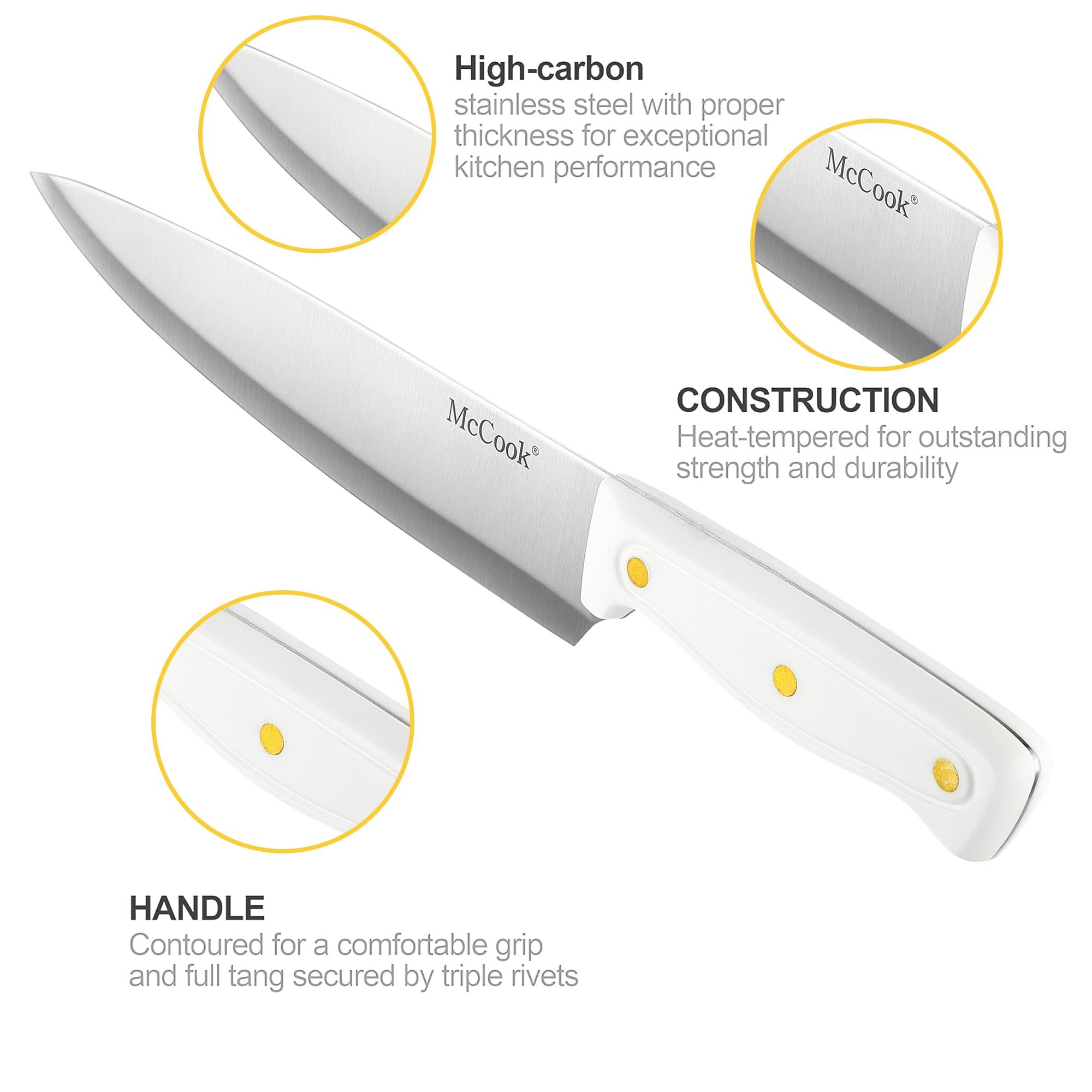 Perfect Gift: McCook knife sets for kitchen with block comes with box. Perfect for Valentine's Day, Wedding, Birthday, Housewarming, Thanksgiving, Halloween, Christmas.
