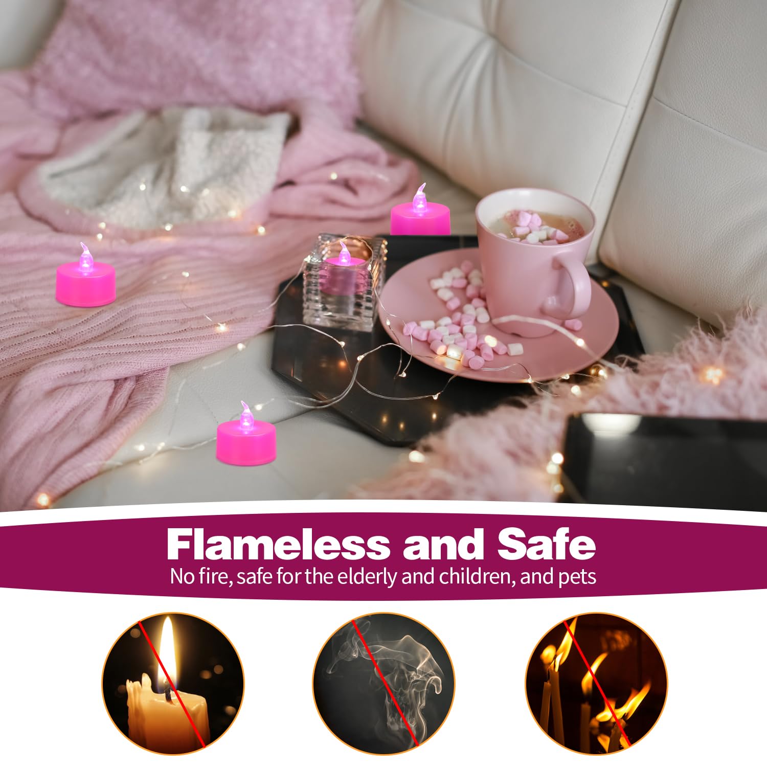 【Package Include】- Package includes 24 pack pink light non-flickering LED tea lights. The realistic appearance of the LED tea lights, which can create a romantic and warm atmosphere.