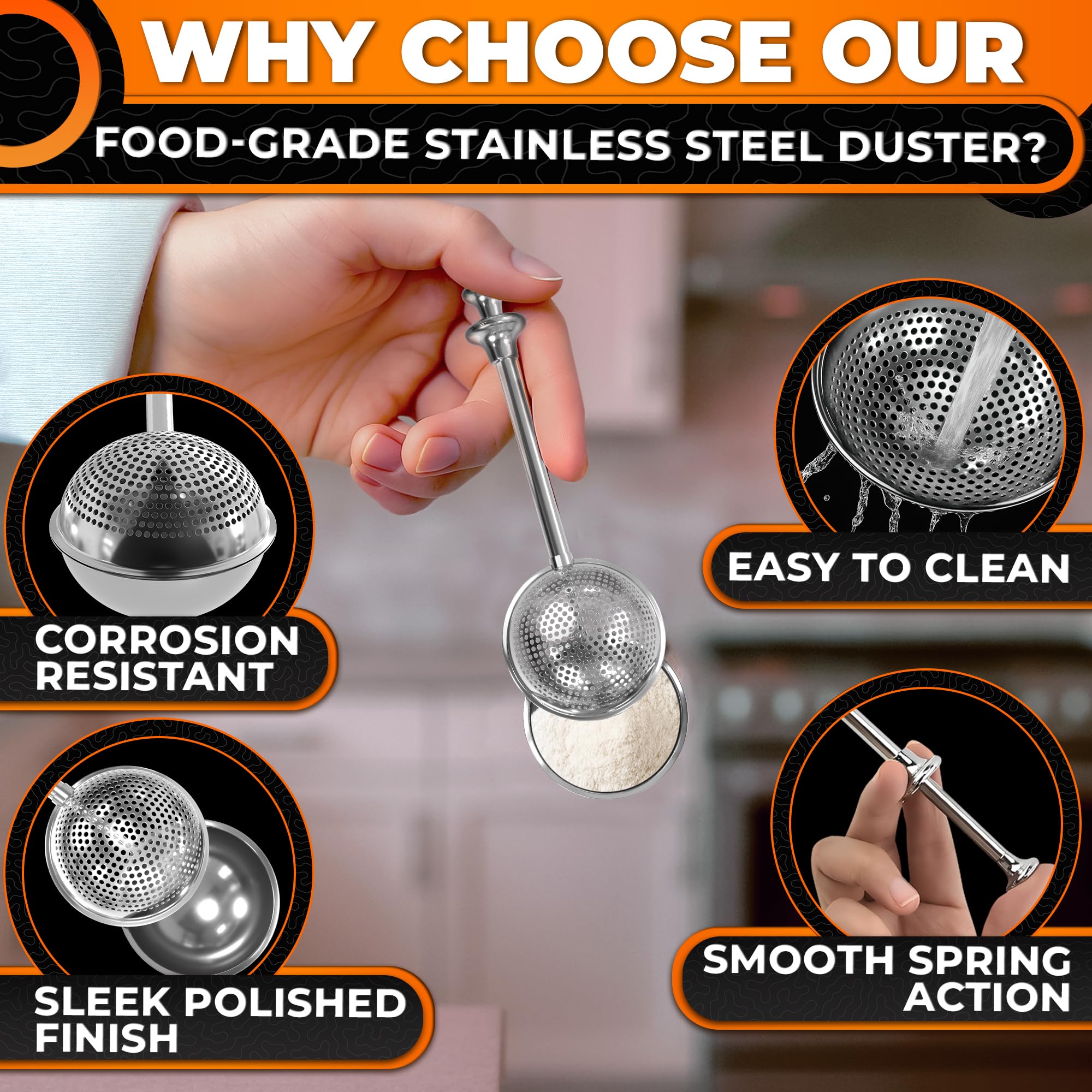 304 Stainless Steel Construction: Made of durable 304 stainless steel, this sourdough flour duster is rust-resistant, dishwasher-safe, and long-lasting—perfect for everyday use and holiday baking essentials