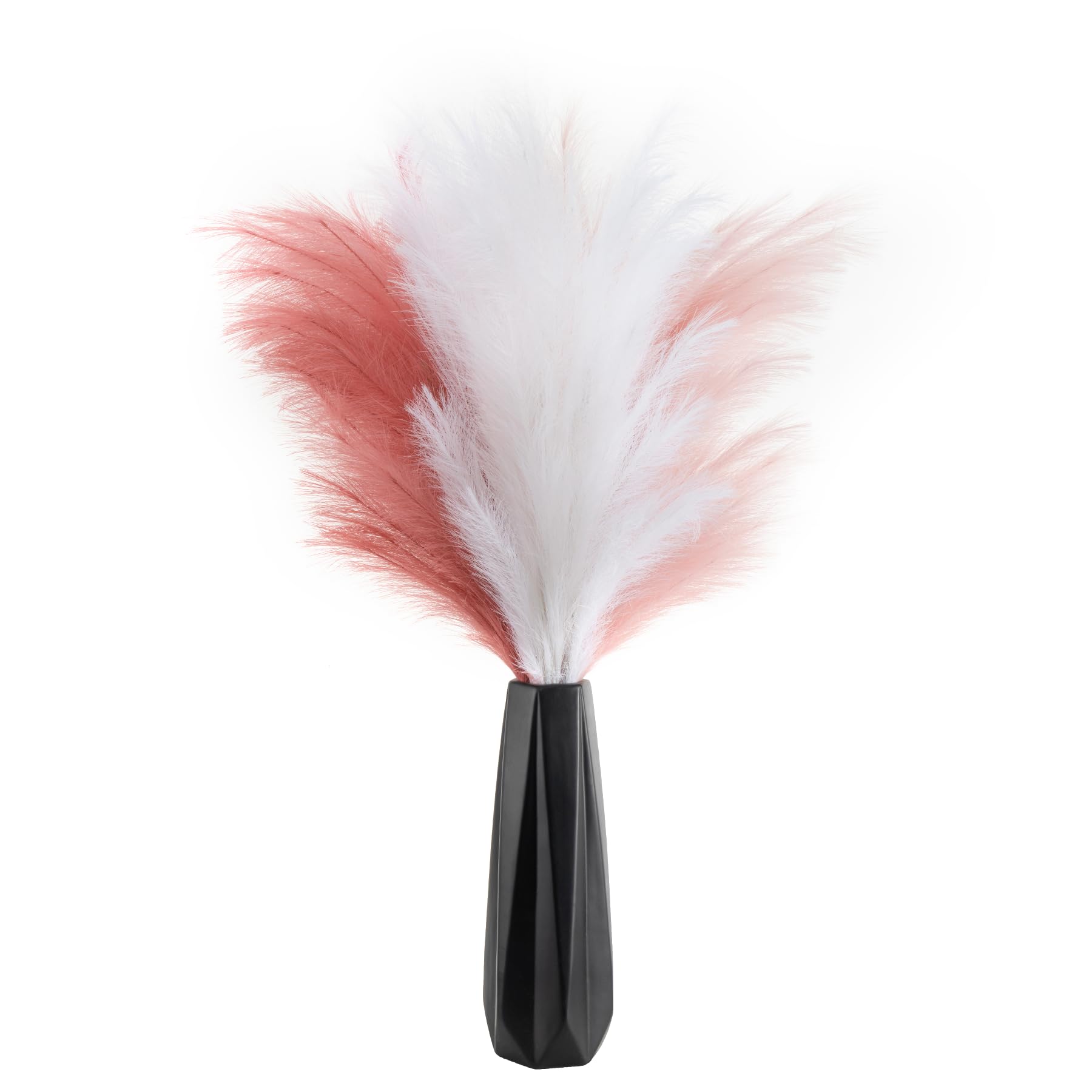 High End Looking Faux Pampas Grass: It's actually made of a metal wire in the stem and silk feather, it holds shape very well. The pompass grass branches tall bulk is really soft and feather-like, with 18 branches on each stem, and the heads of each stem are designed so you can fluff them up for a fuller look