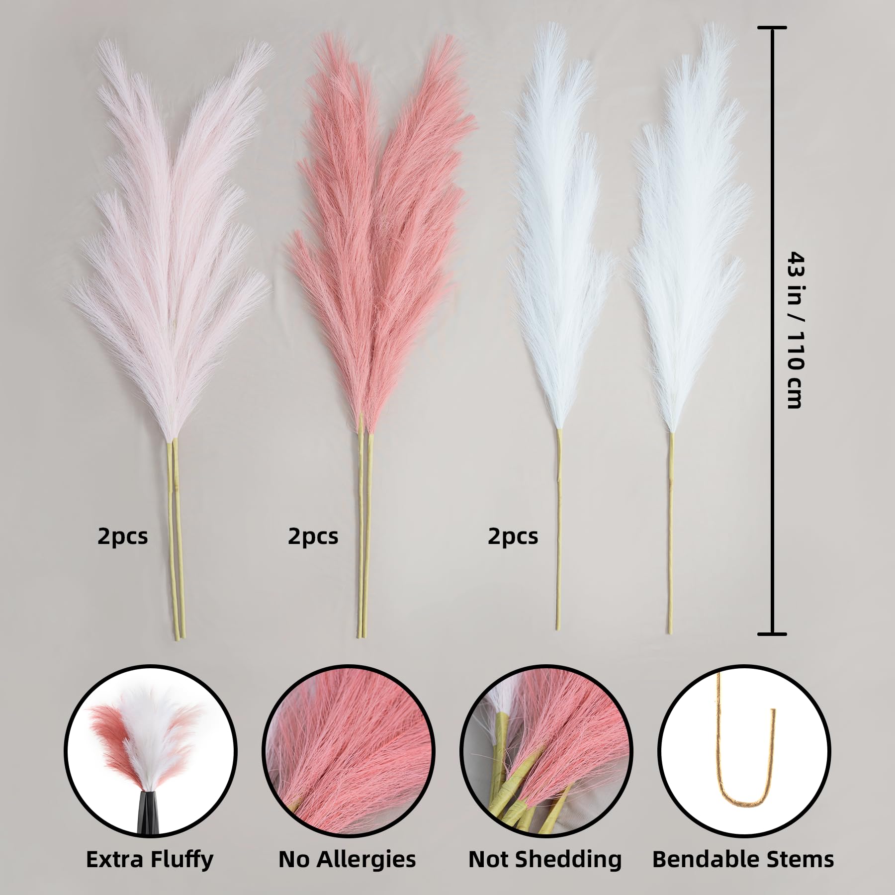 Warm Color& Good Texture Pompous Grass: It comes with 6 long stems of extra fluffy and tall faux pampas grass They're nice and full and have a really impressive appearance, nicely with a variety of decorations! Packaging with box to avoid crushing during transit, hold their shape very well