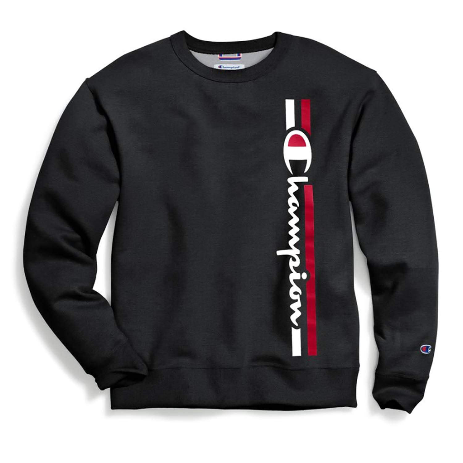 Champion Graphic Vertical Powerblend Fleece Crew Sweatshirt Bkcblack XL