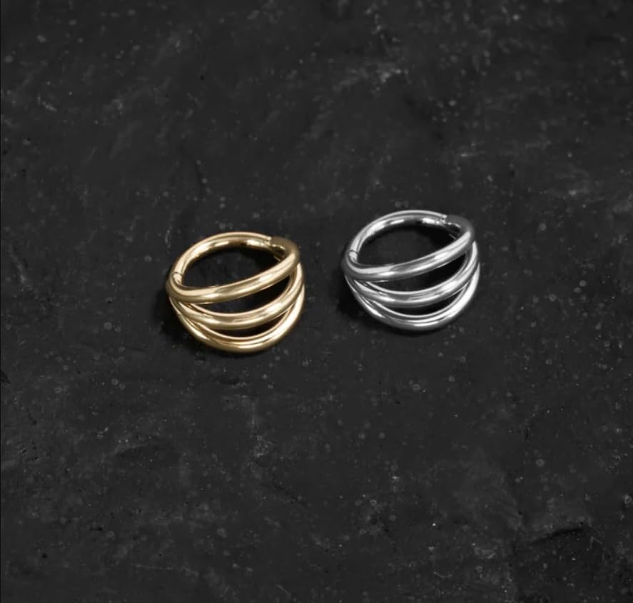 1pcs triple septum ring gold, easily get double septum look with only one septum piercing!