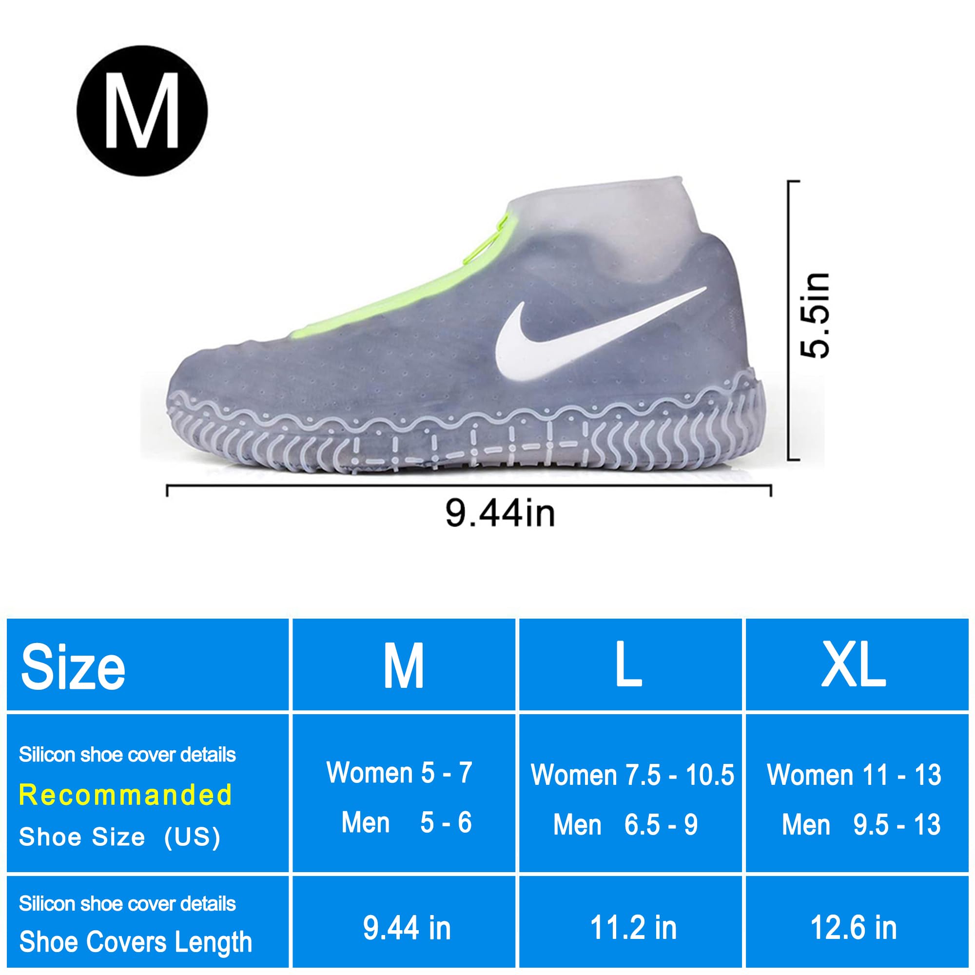 ALL-ROUND WATERPROOF, REUSABLE : Stretchable silicone And very resistant to tearing, Waterproof zipper strip design helps you to put them on and off easily,it can avoid rain or water into the shoe cover from zipper,extending the lifetime of your footwear. Waterproof shoe cover no need to take hundreds of shoe & boot covers, simple to wear silicone waterproof cover just spend one minute.
