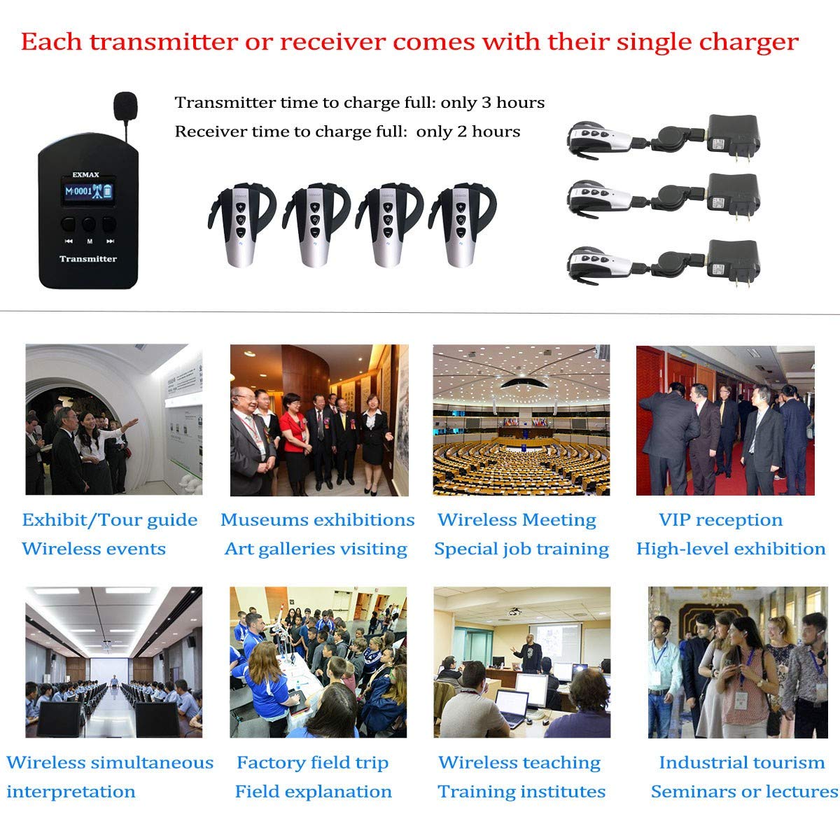 ✤【WORRY-FREE AFTER-SALES】EXMAX offers 2-year warranty. We are full of confidence in the quality,We protect your purchase with an 24-month replacement warranty, 100% satisfaction assured and lifetime customer support. If you have any question with our wireless tour guide equipment, please click Sold by "EXMAX" and "Ask a question",then leave a message to us. Your problems and suggestions is the key for us to improve.Thank you for choosing EXMAX products! EXMAX provide 24/7 online services.